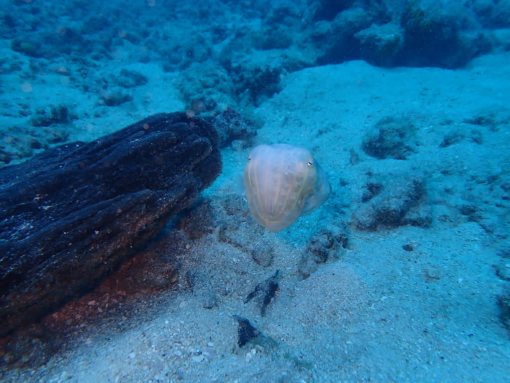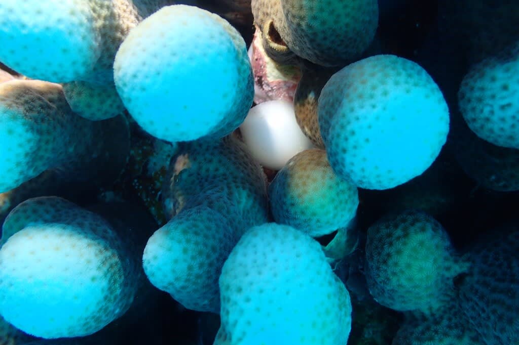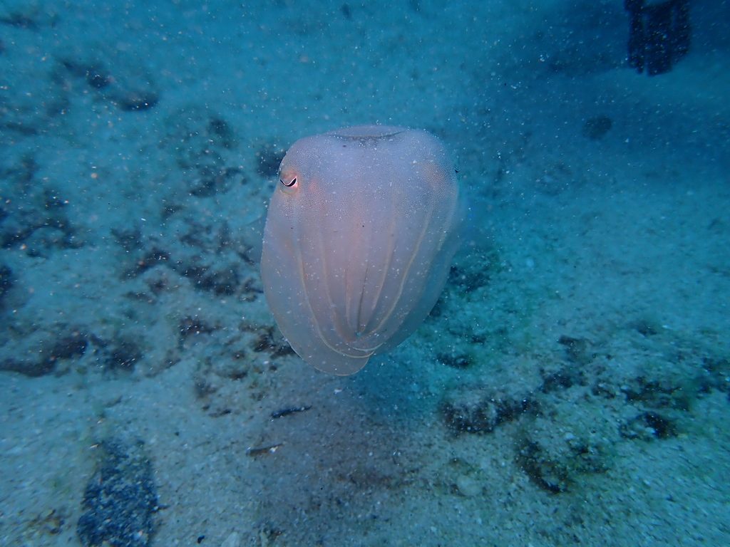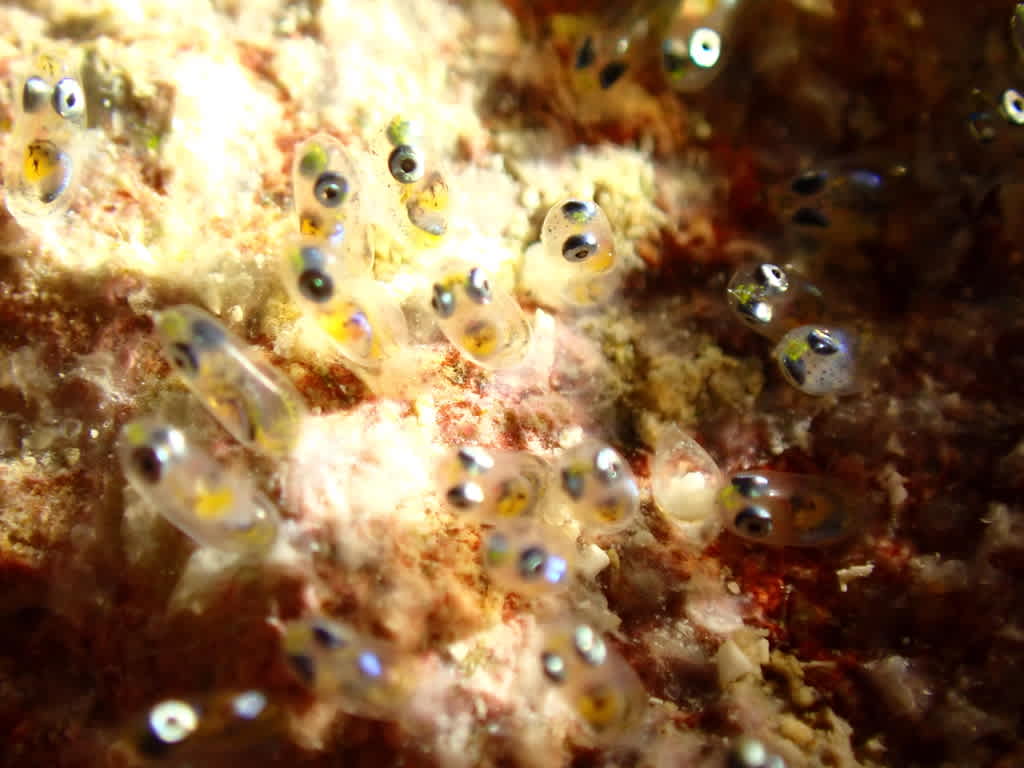 (↑写真中央よりやや上の白い球が、コブシメの卵)