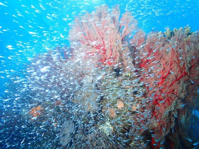 真っ赤なイソバナとキラキラのスカシテンジクダイがバエますね!!