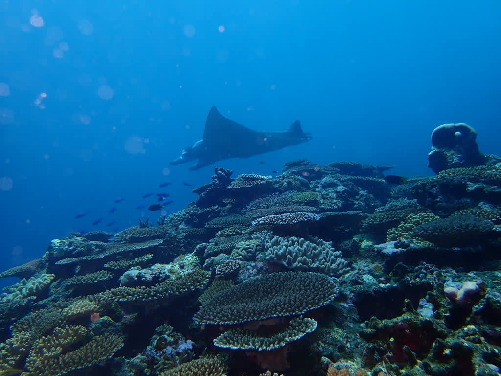 マンタって、ゆっくり動いているようで、やっぱり人間より速い。