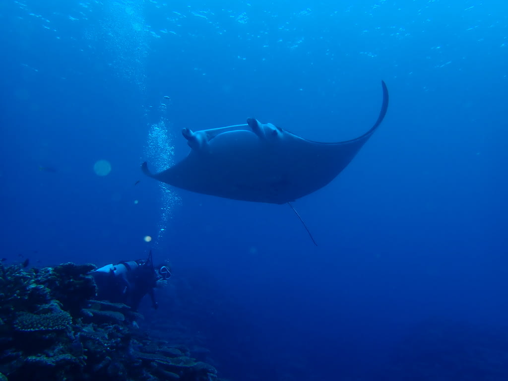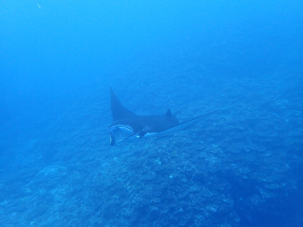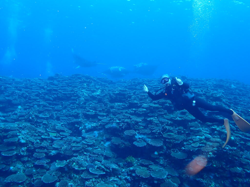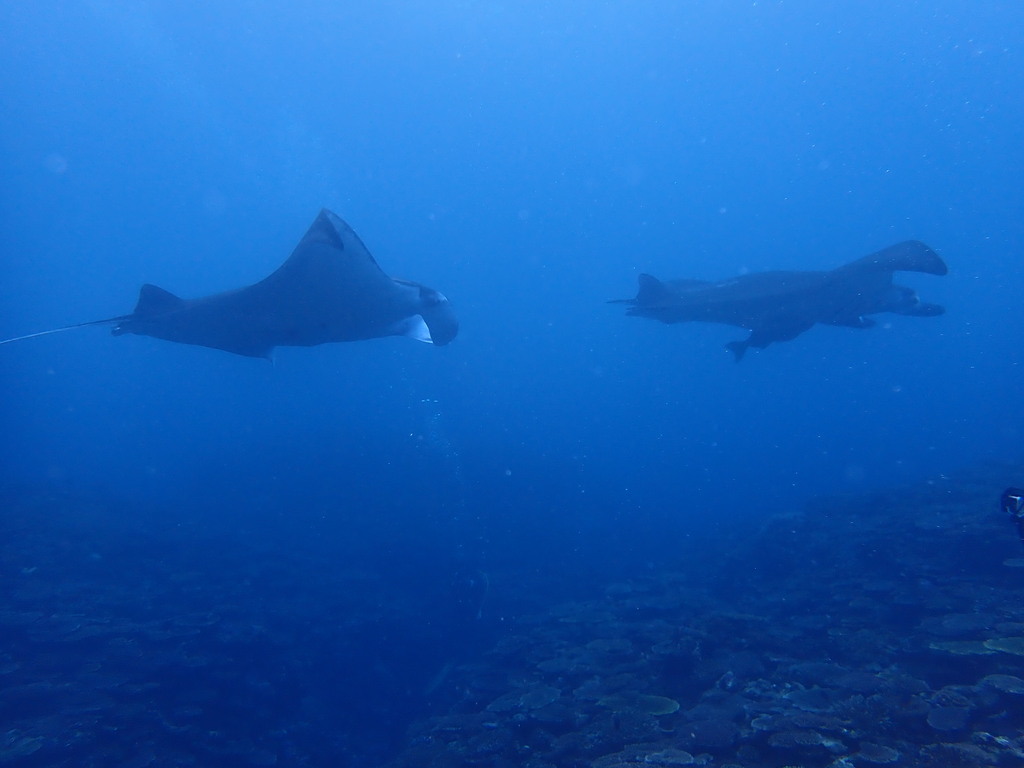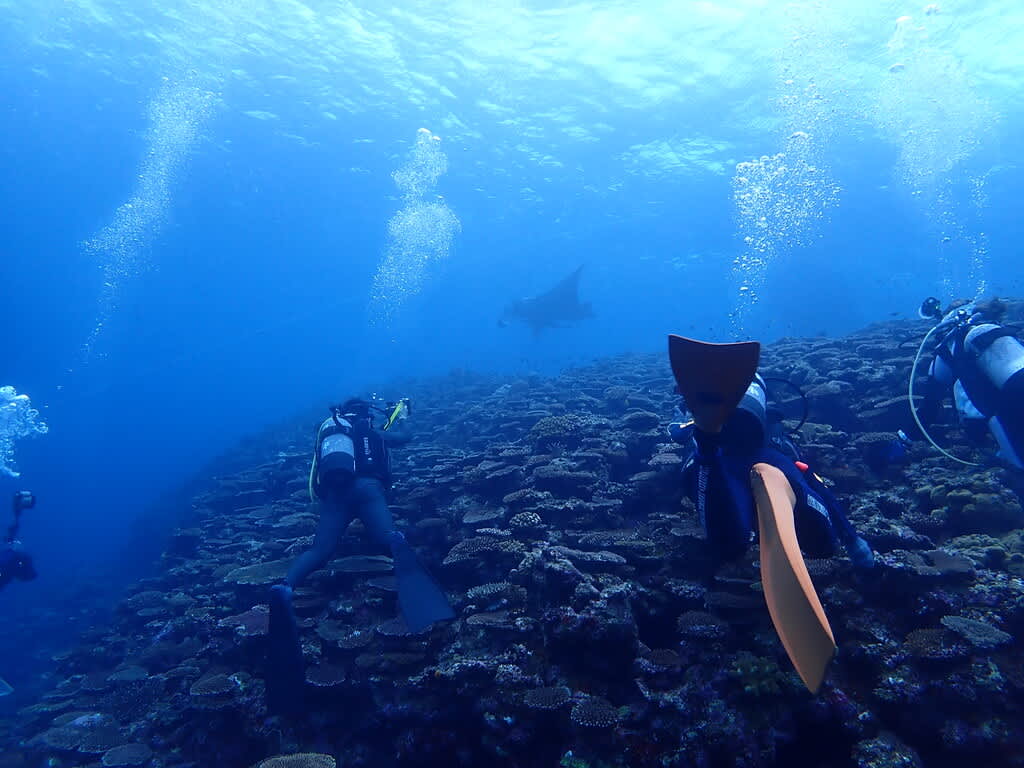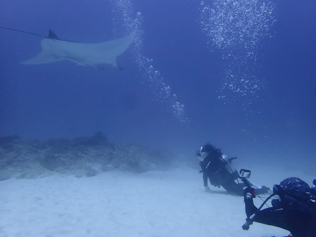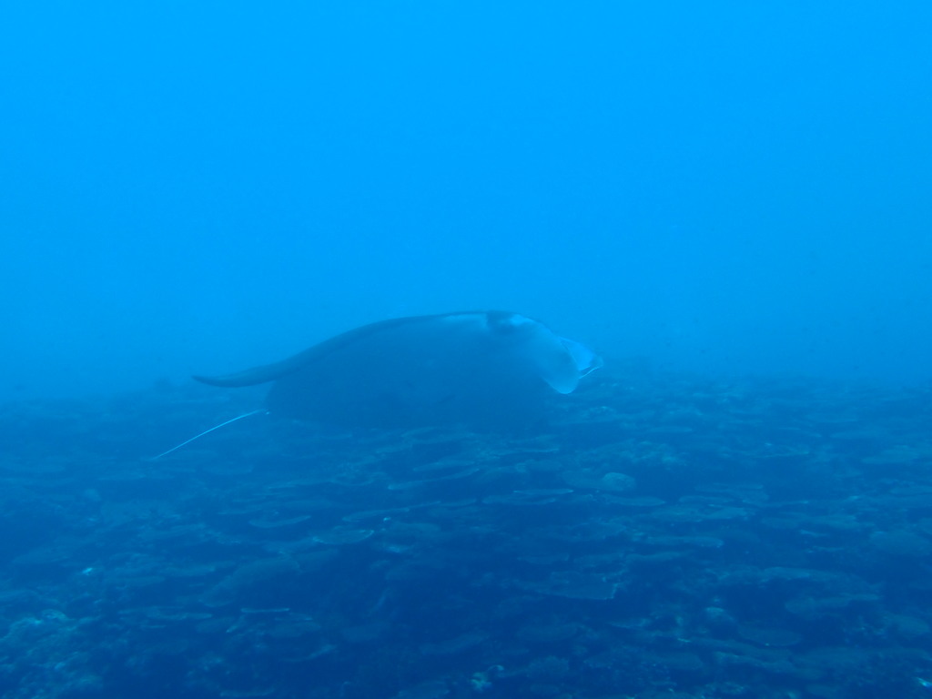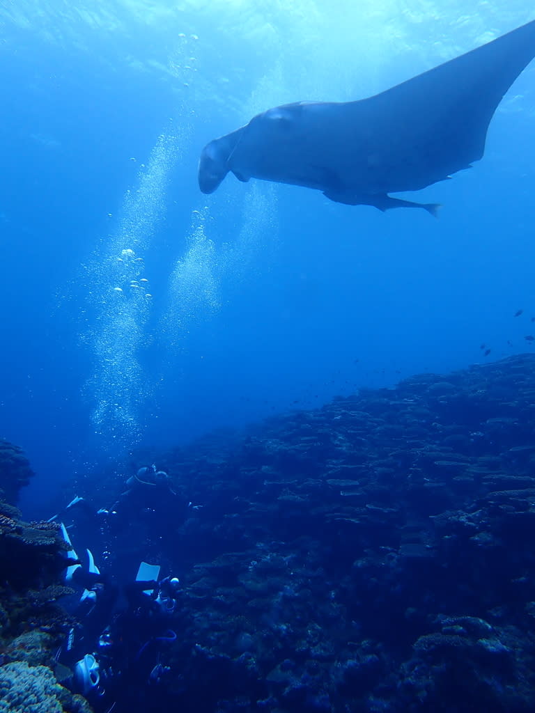 ゆっくり泳ぐマンタが何度も目の前を通り過ぎてくれて。