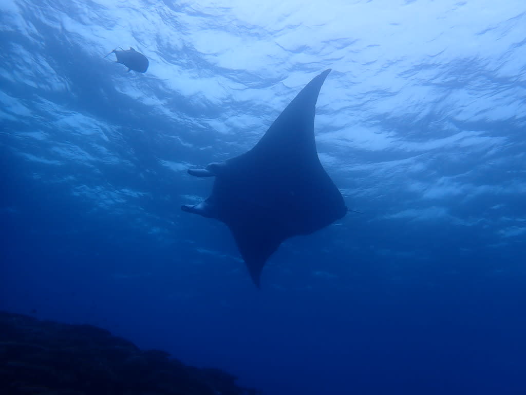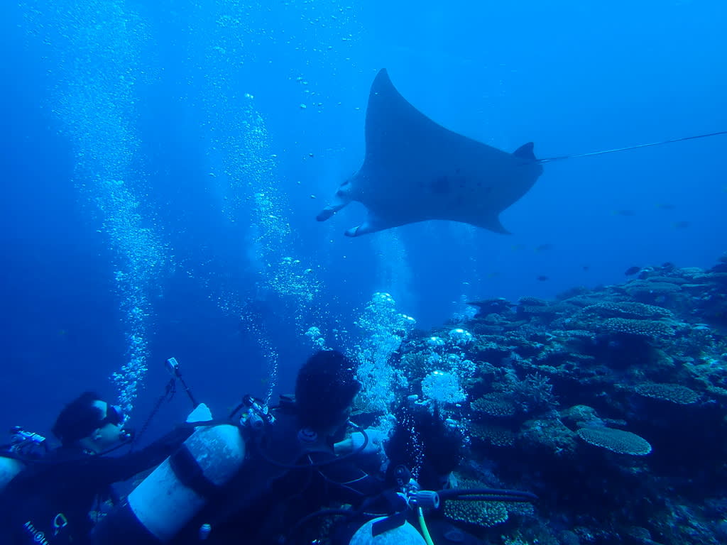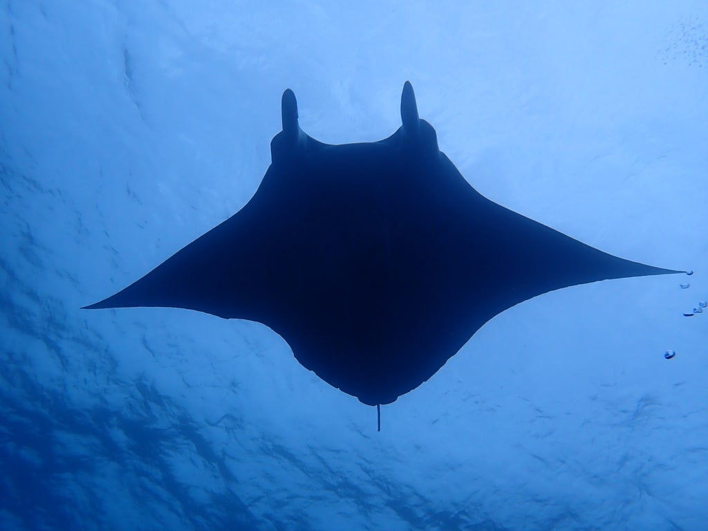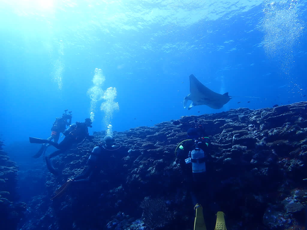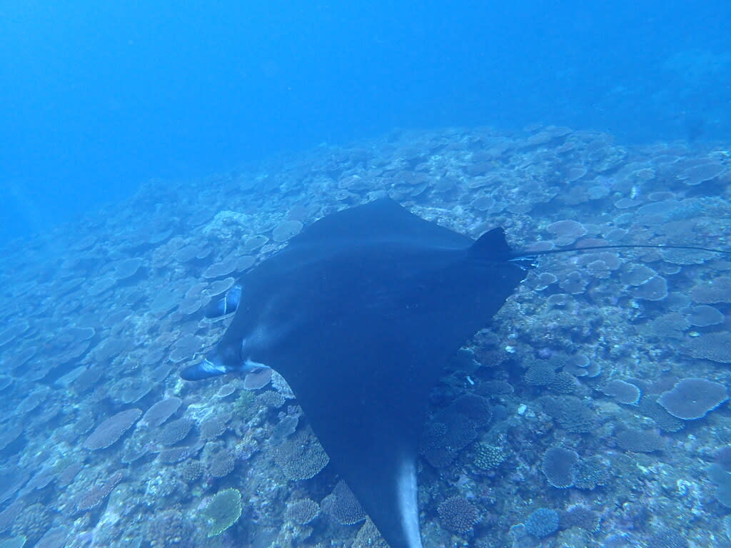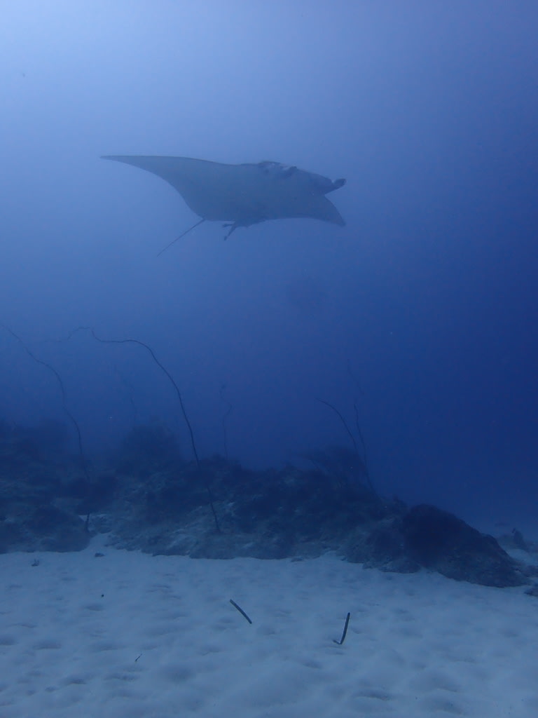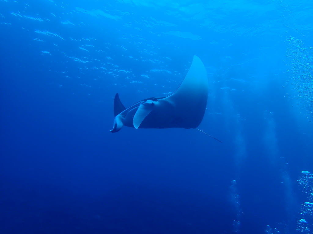 ゆっくり泳ぐマンタが何度も目の前を通り過ぎてくれて。