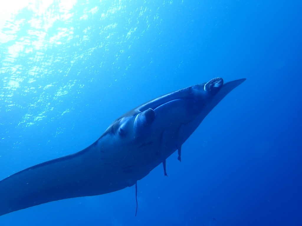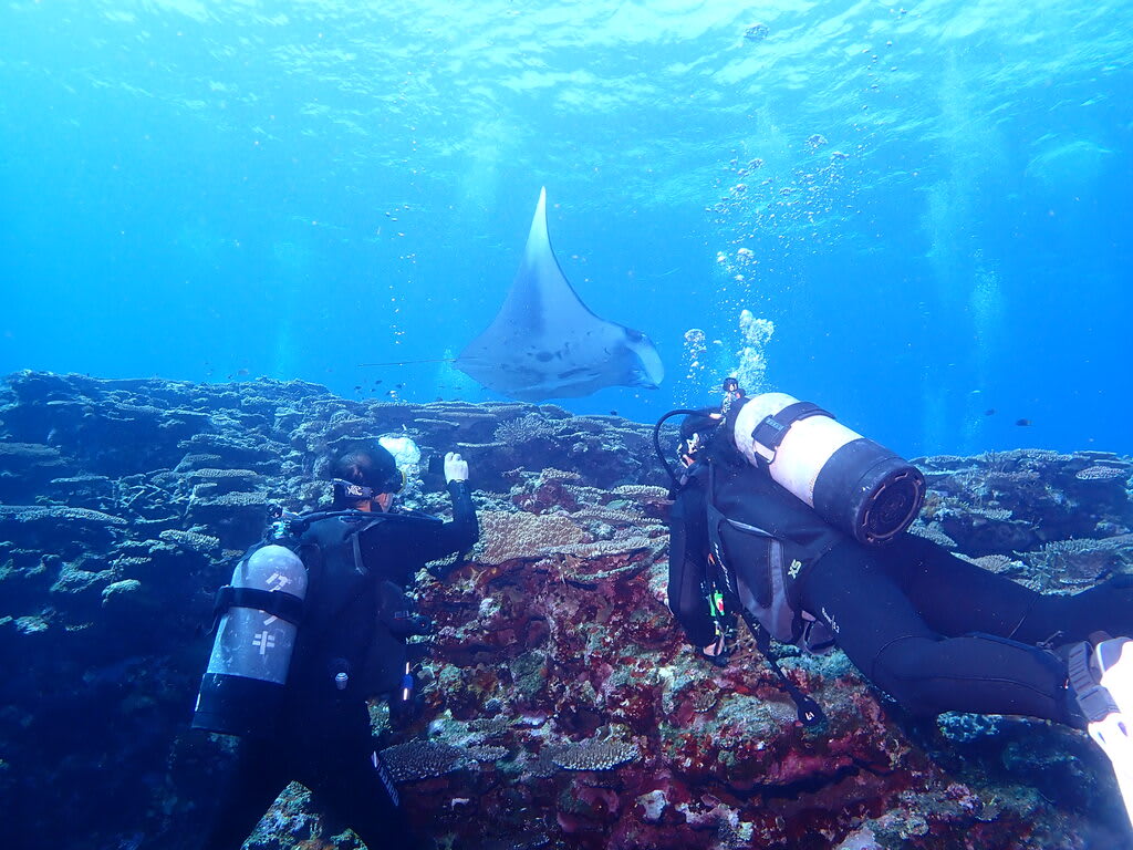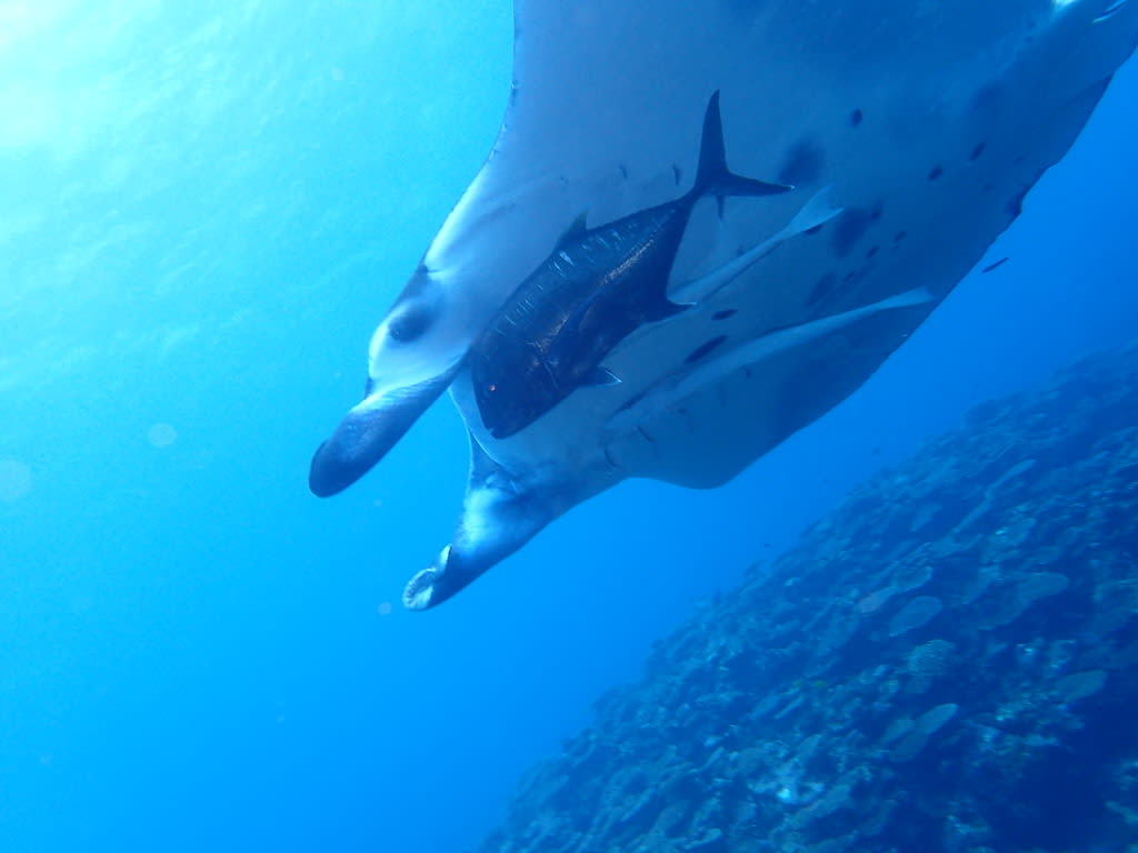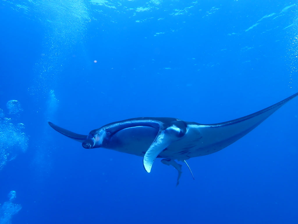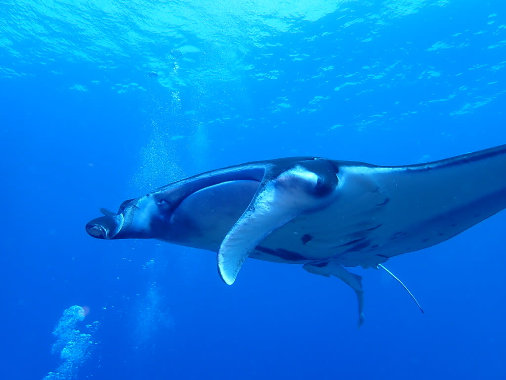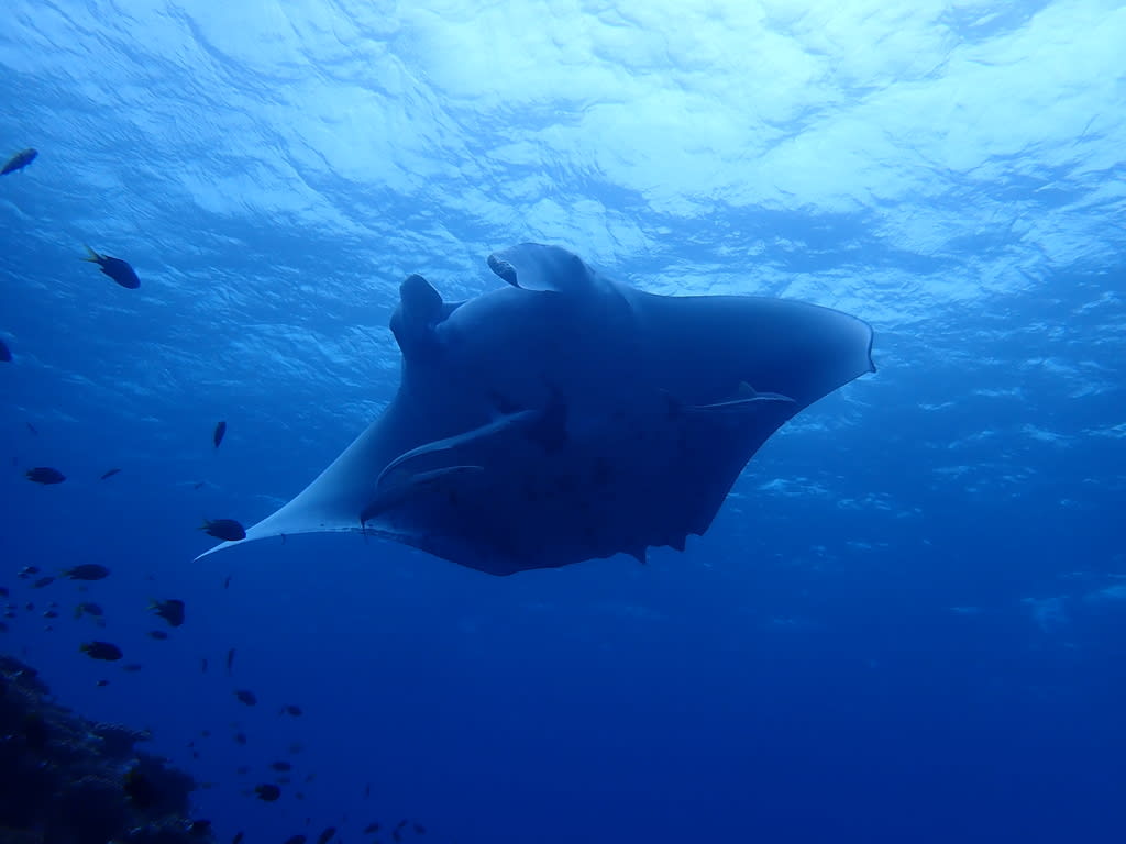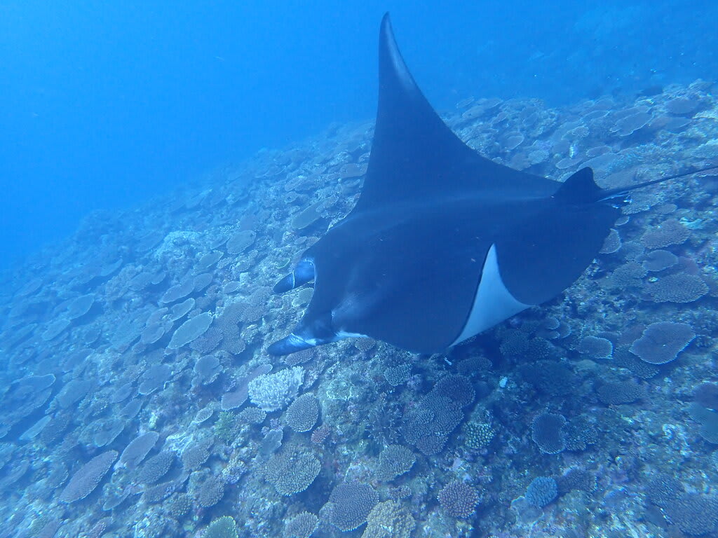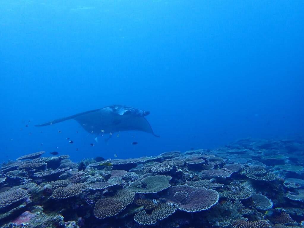 ゆっくり泳ぐマンタが何度も目の前を通り過ぎてくれて。
