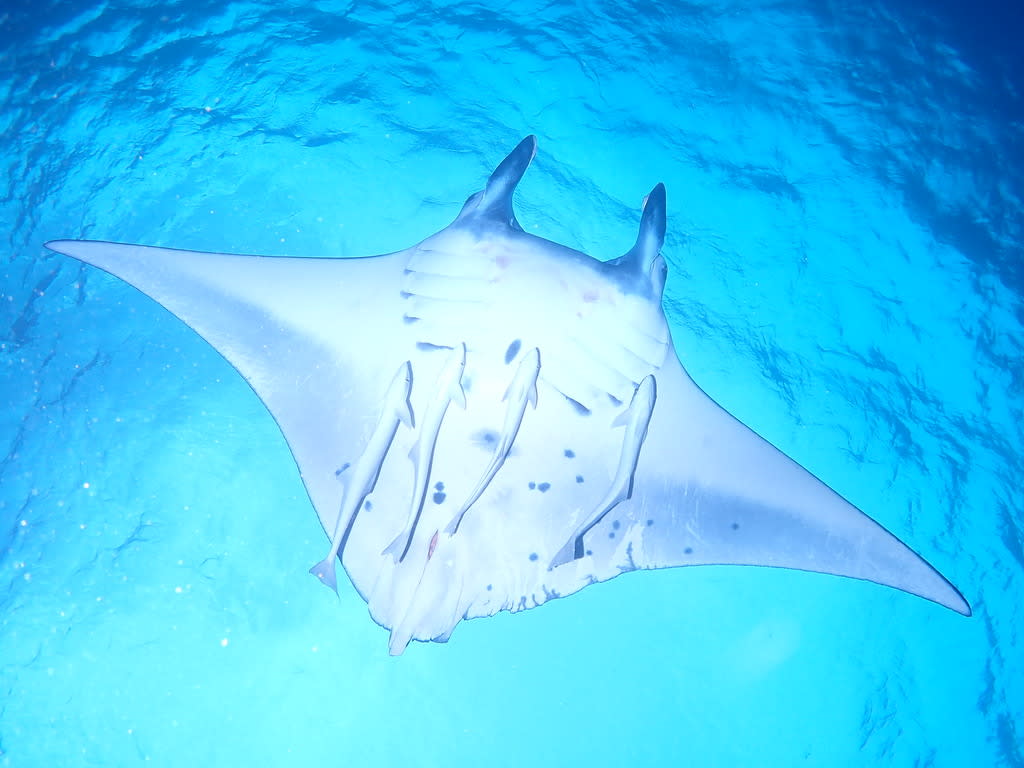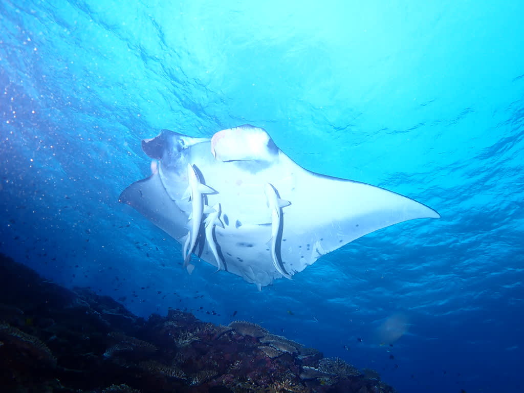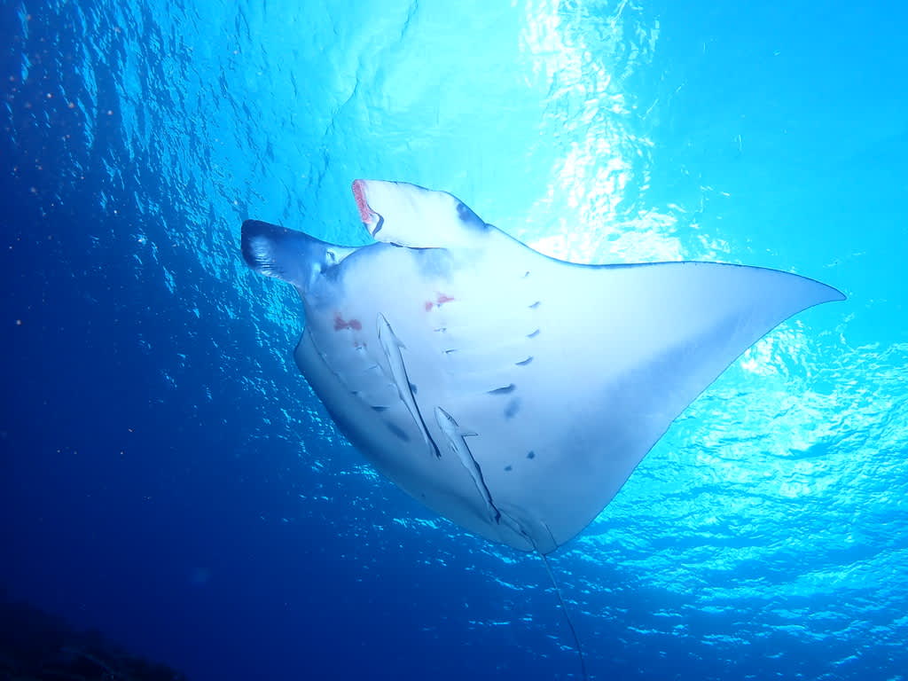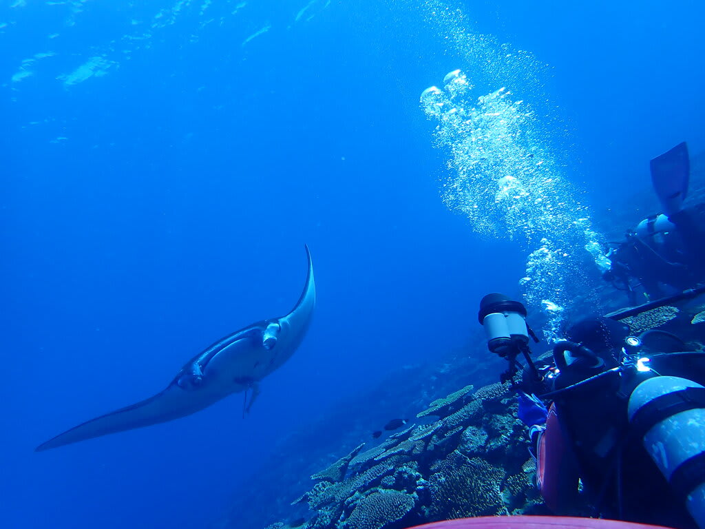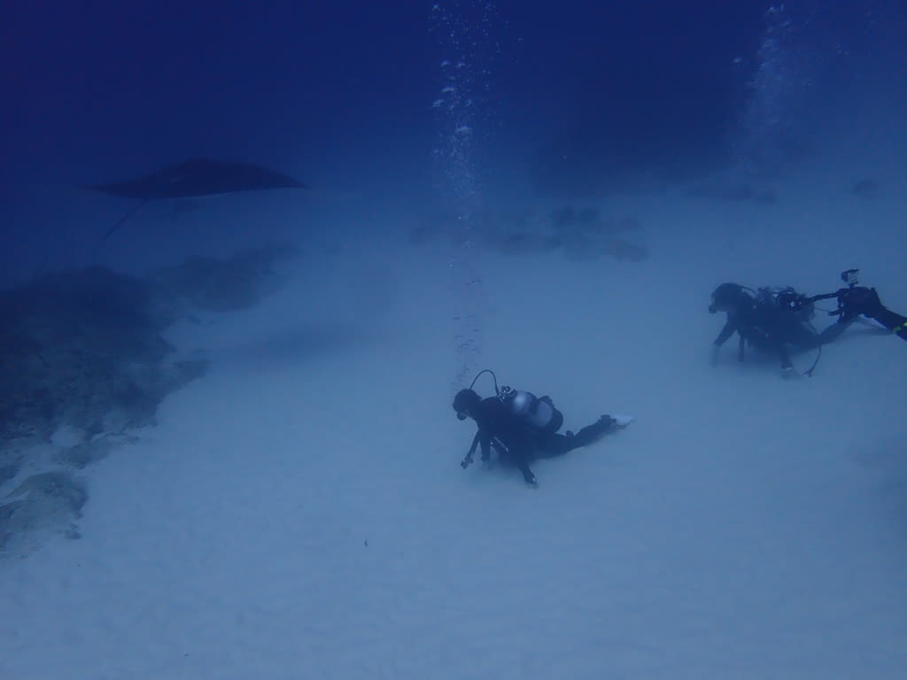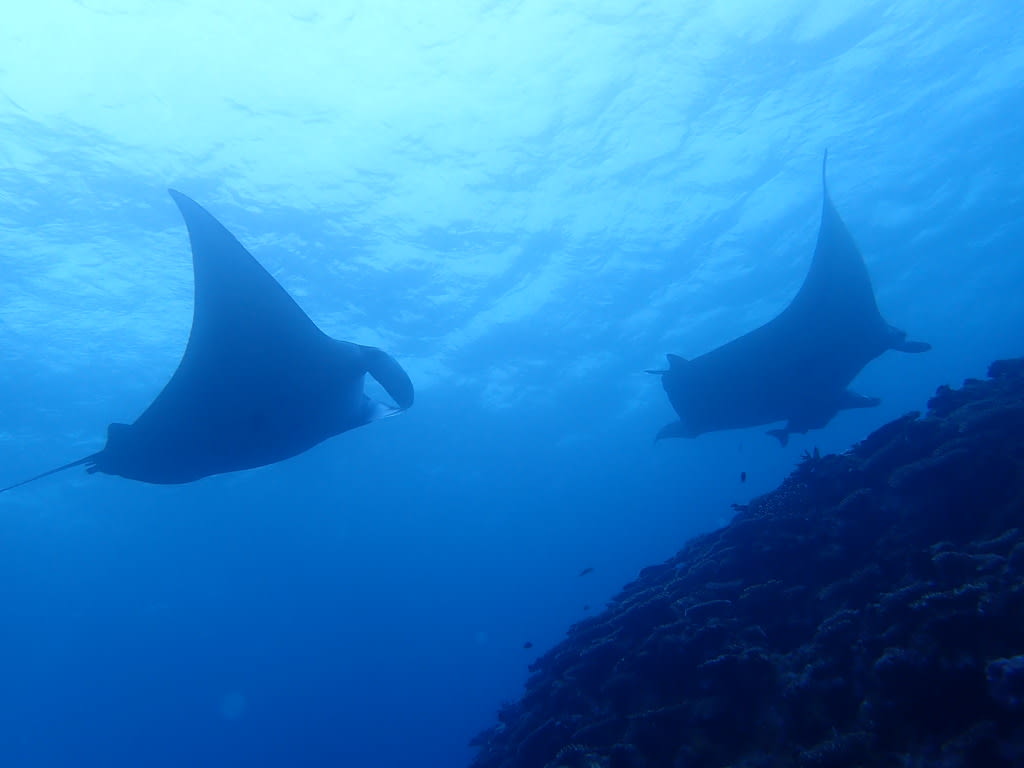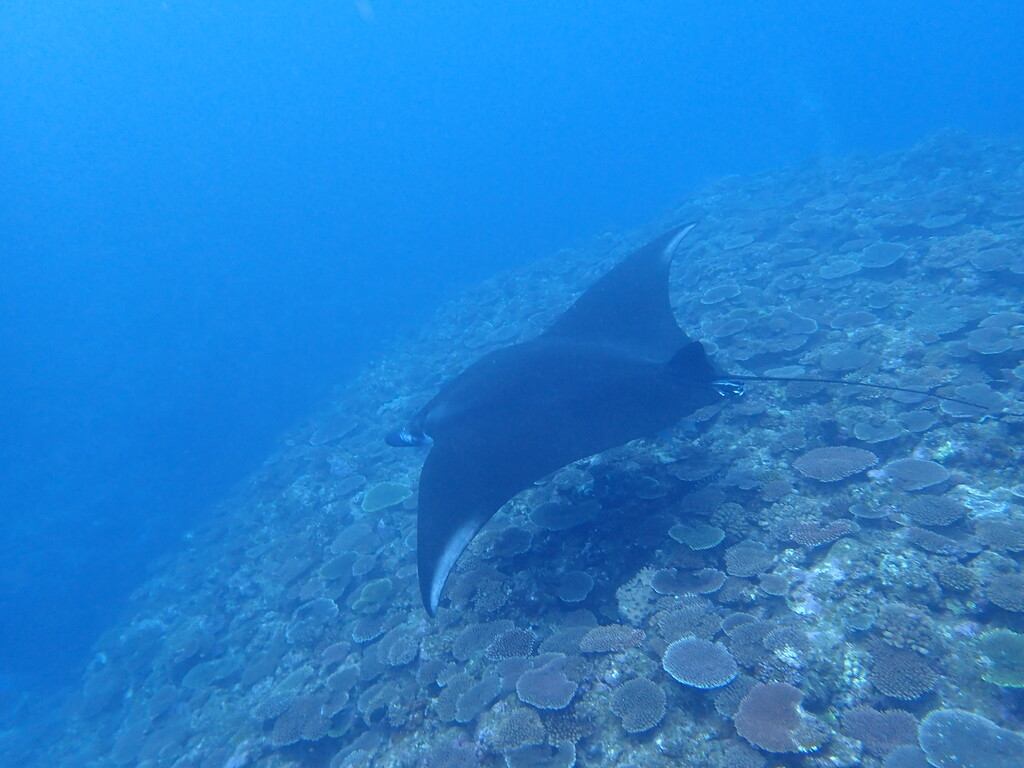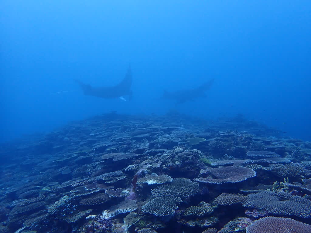 ゆっくり泳ぐマンタが何度も目の前を通り過ぎてくれて。
