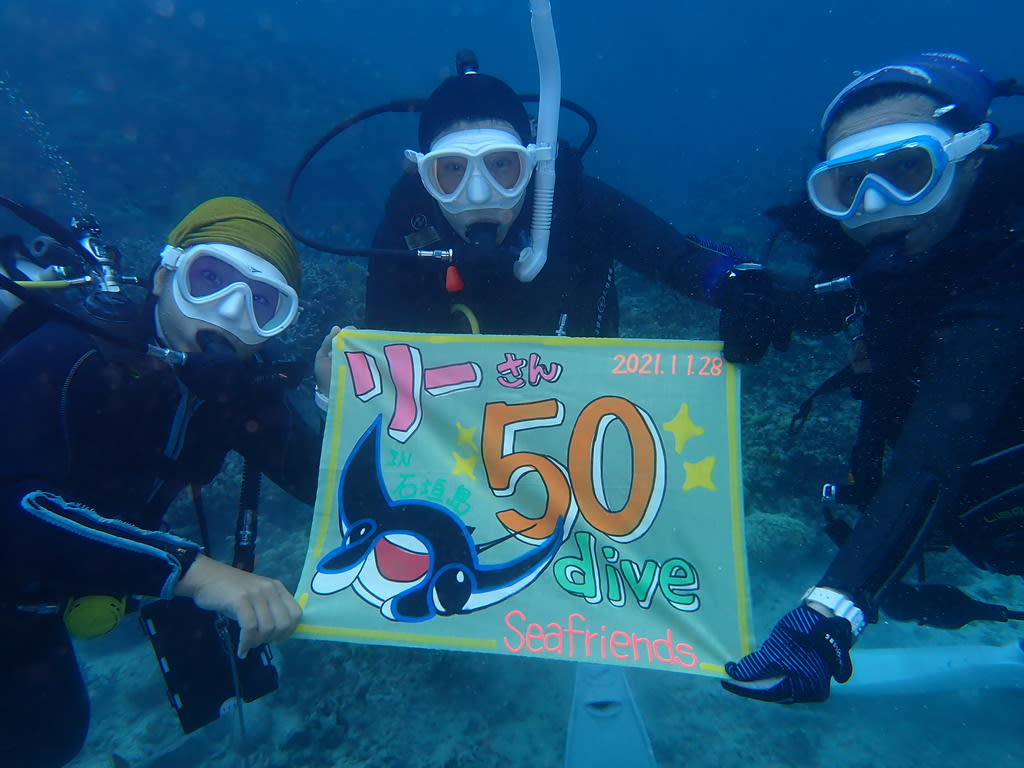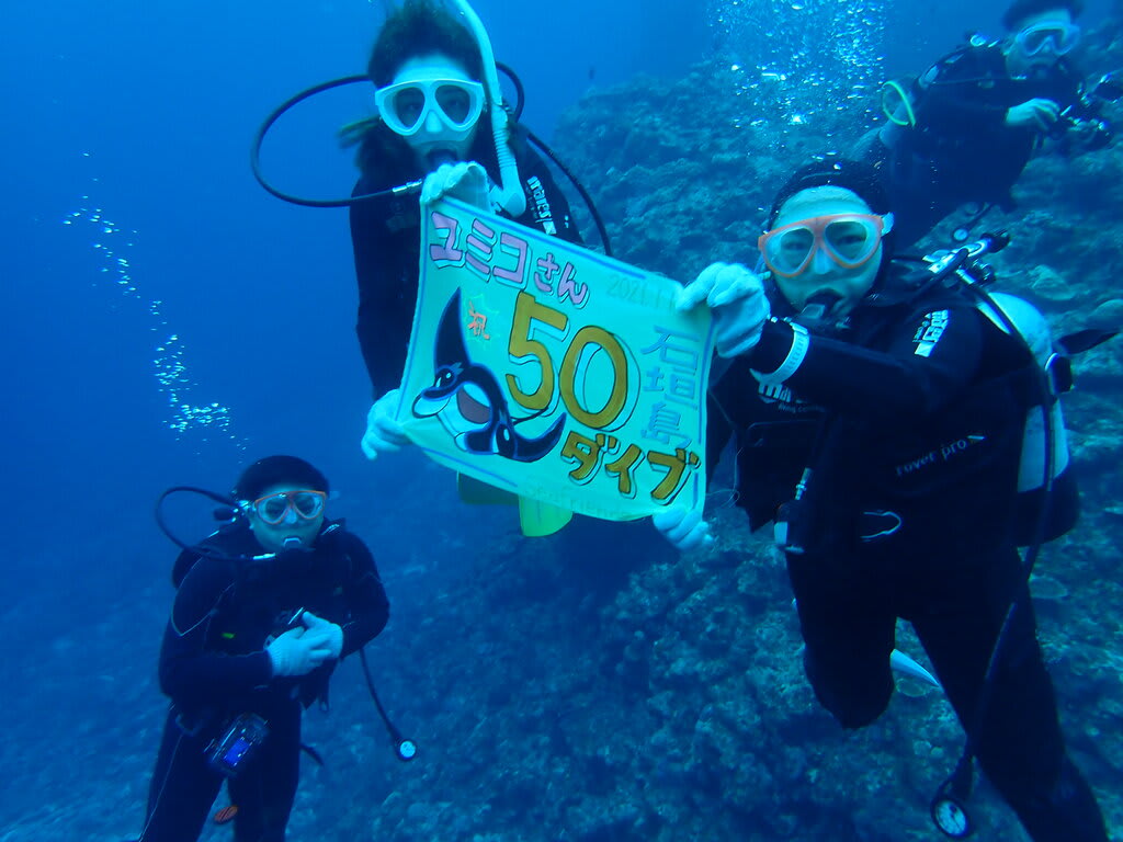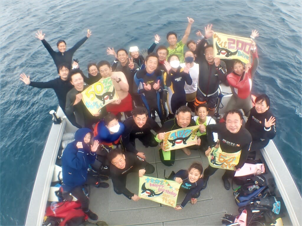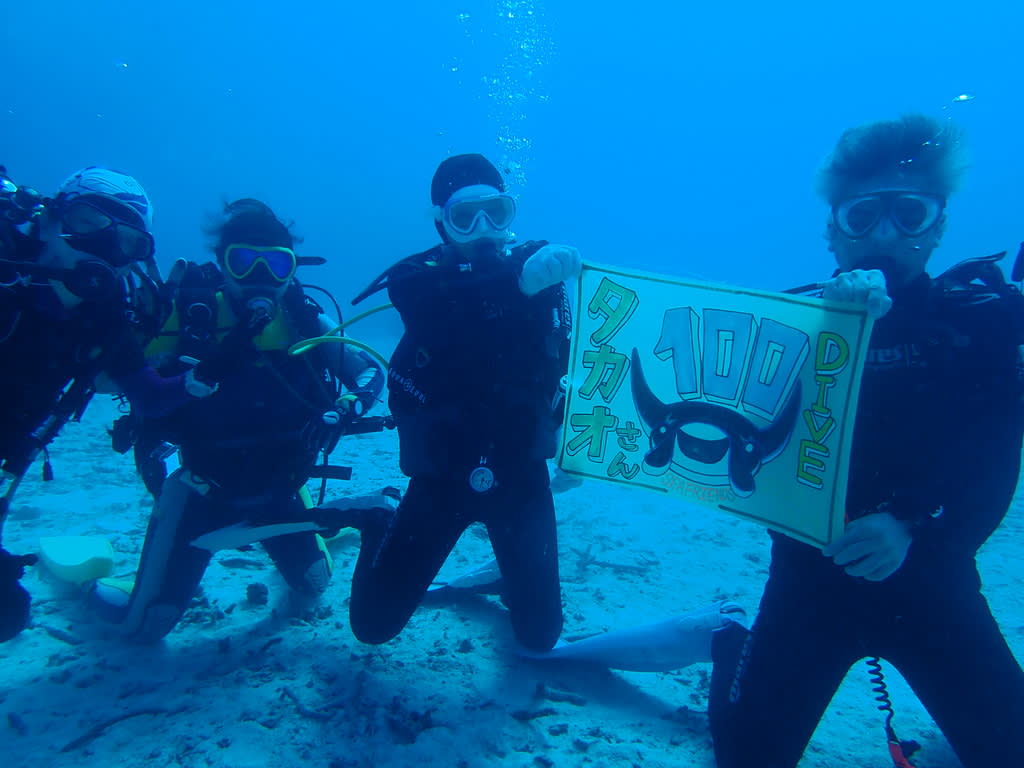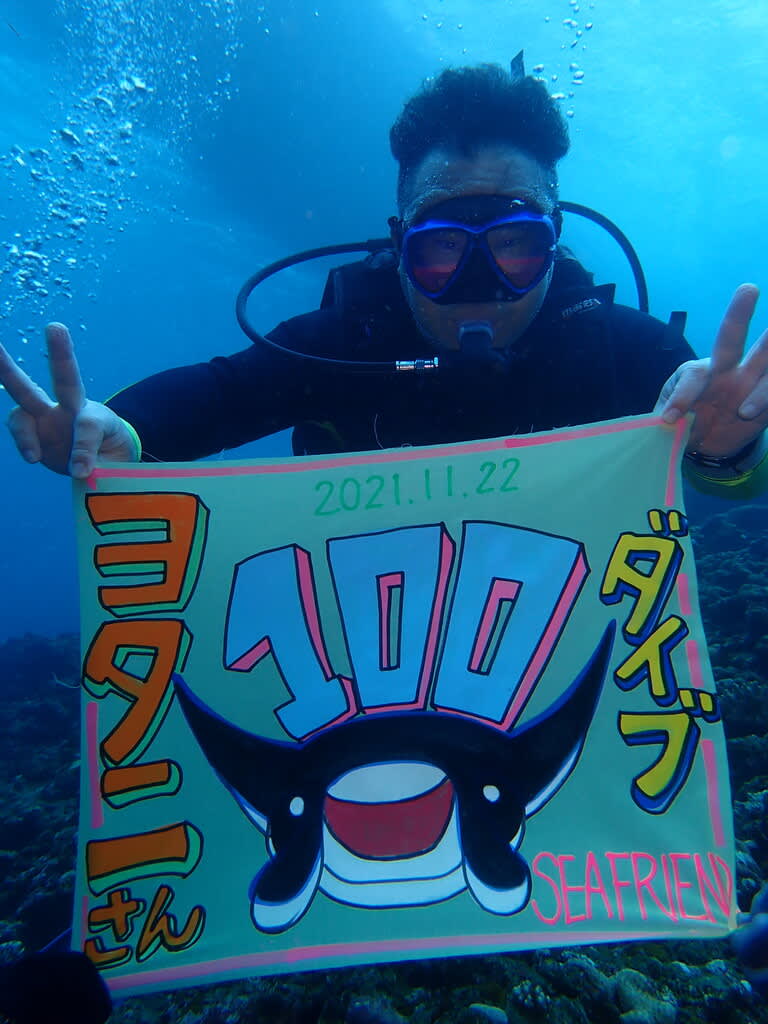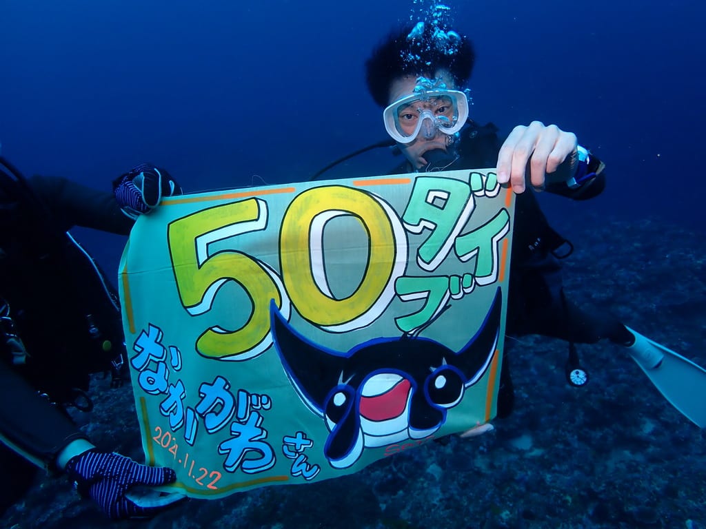 これから特製フラッグでお祝いするダイバーがぞくぞく登場しますよ。