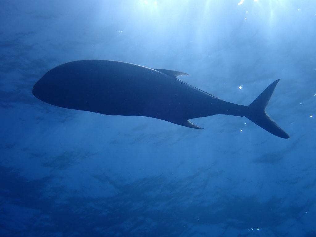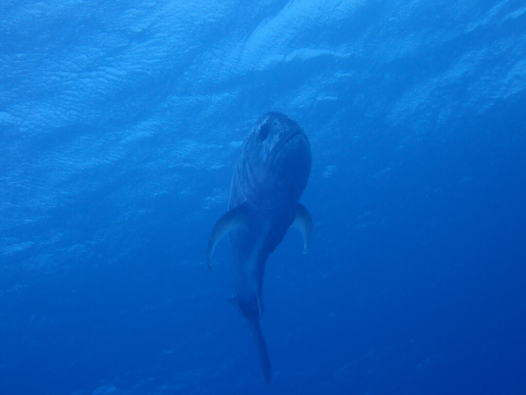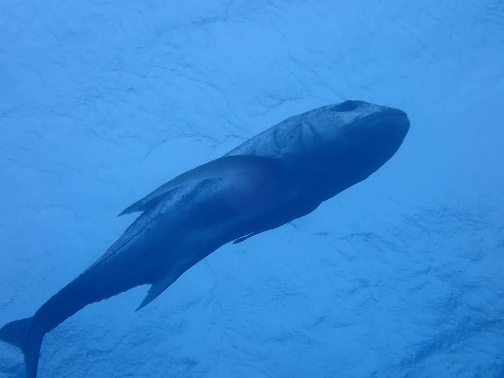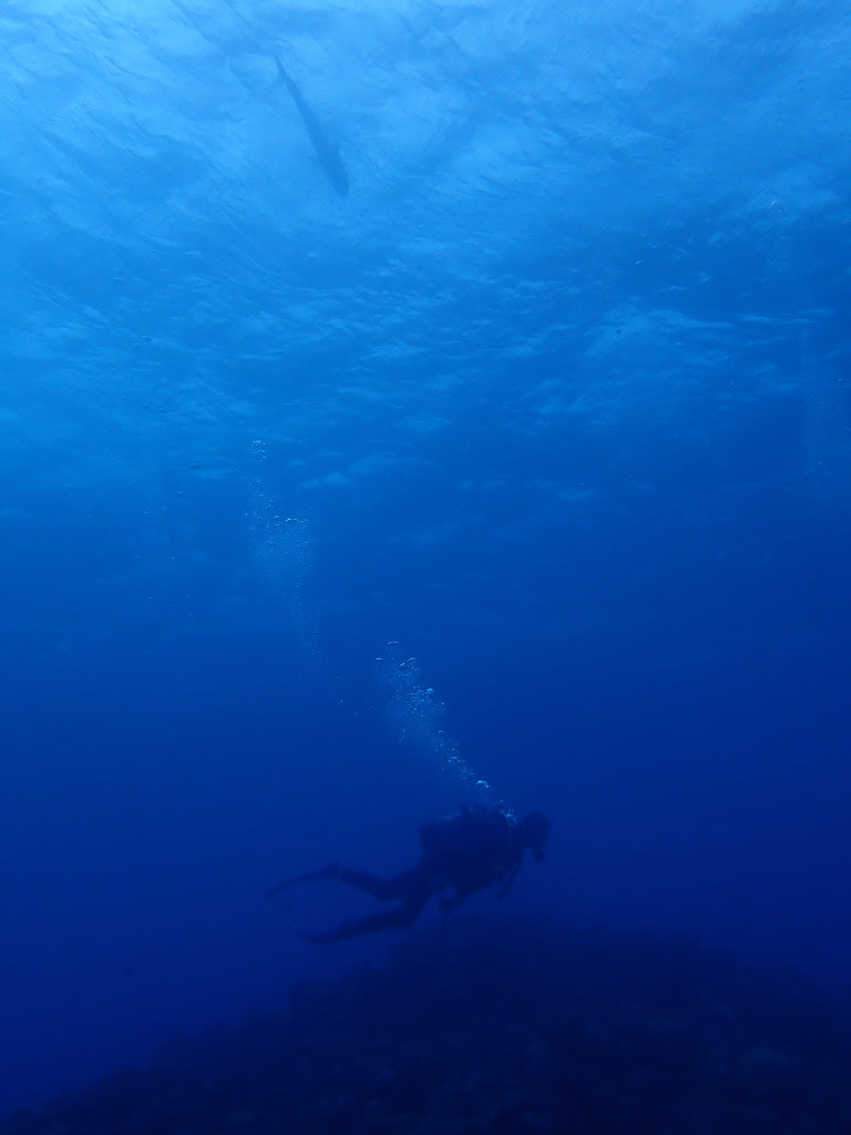 ダイバーの上をウロウロする大きな影。