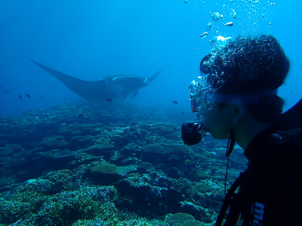 初めてみるマンタはすごく大きく