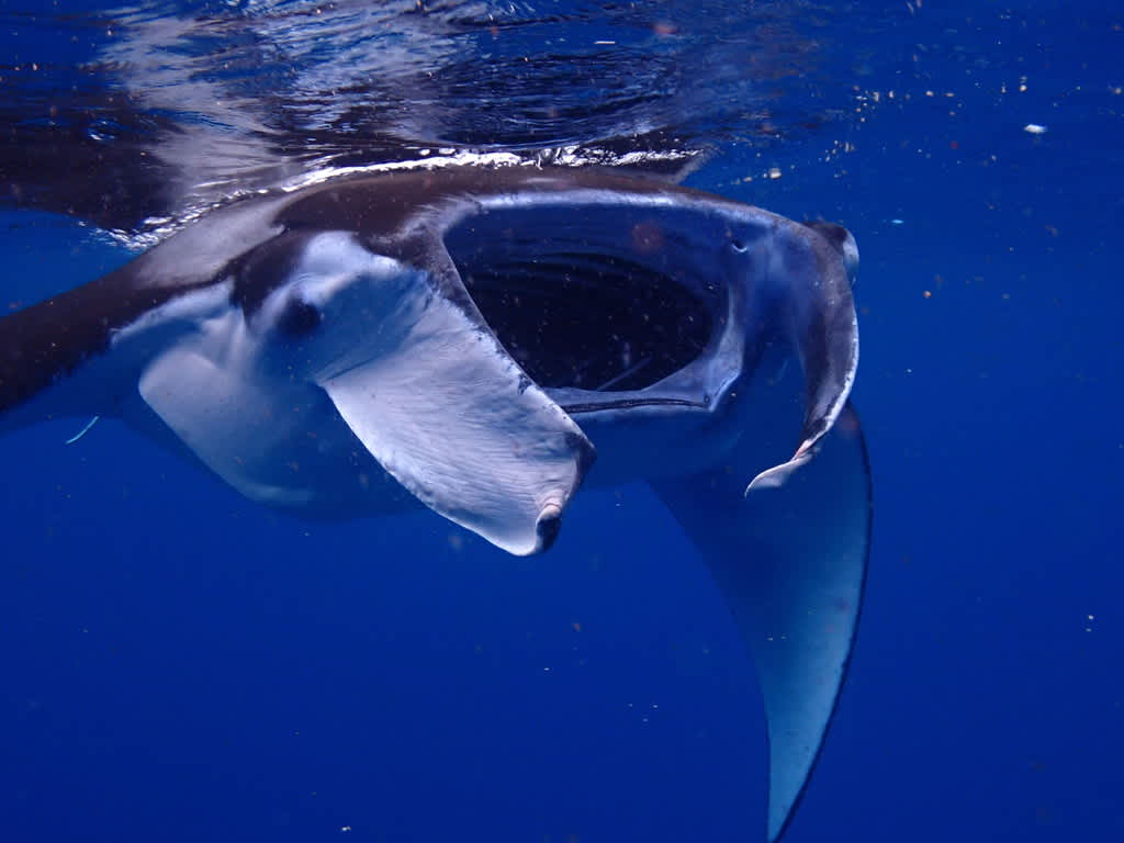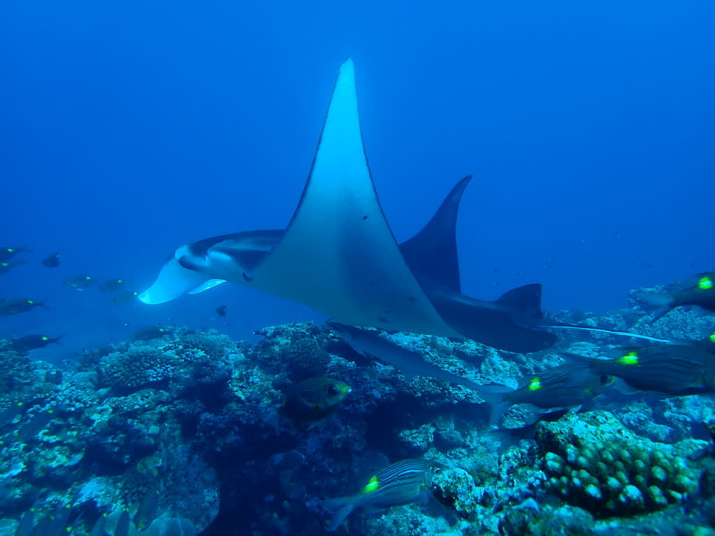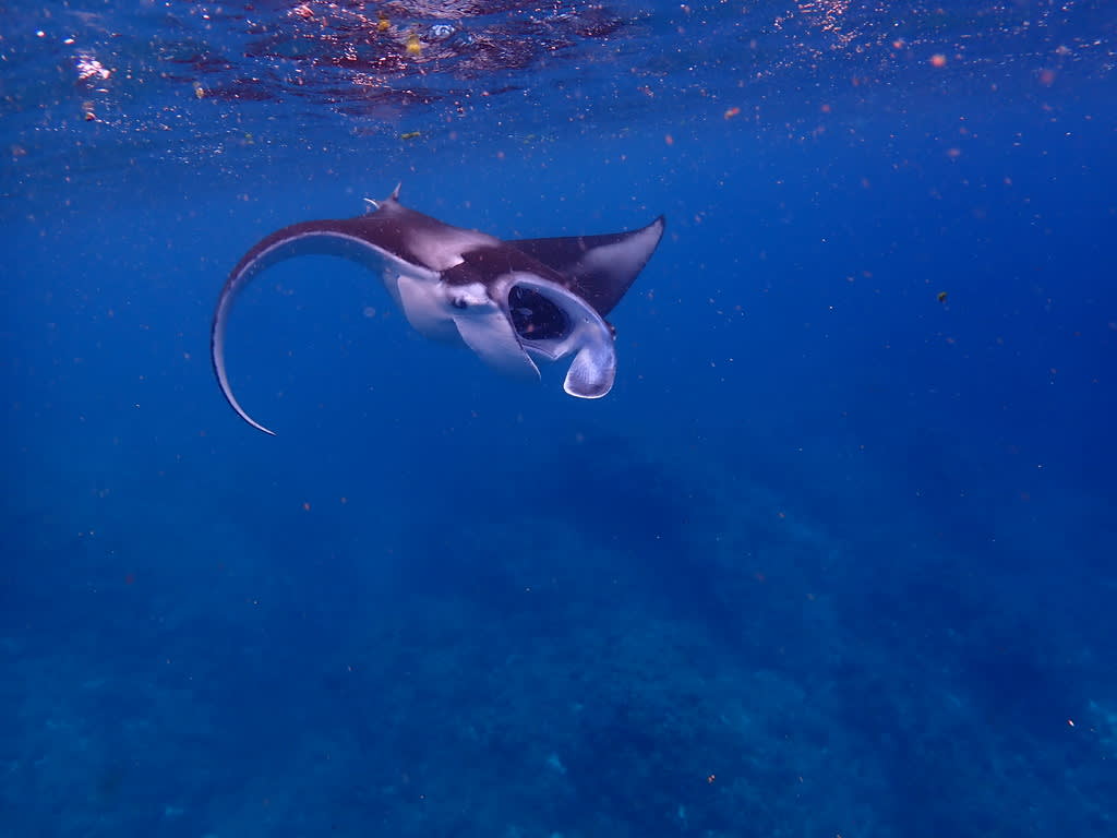 遠くからもわかる、マンタの存在感