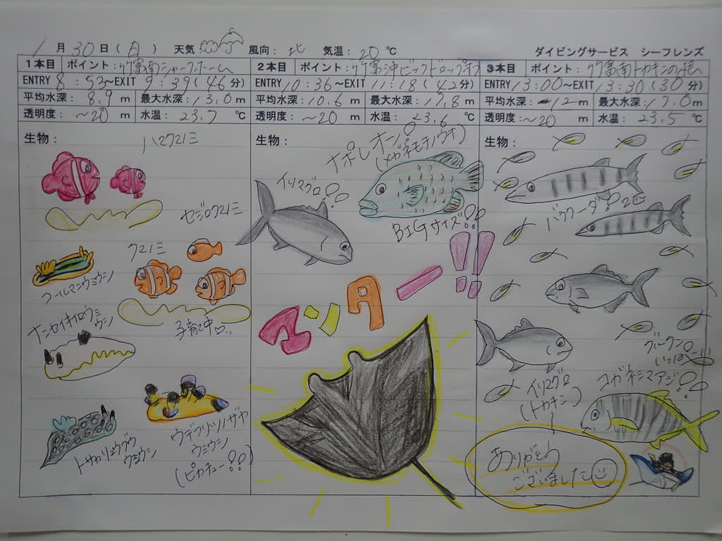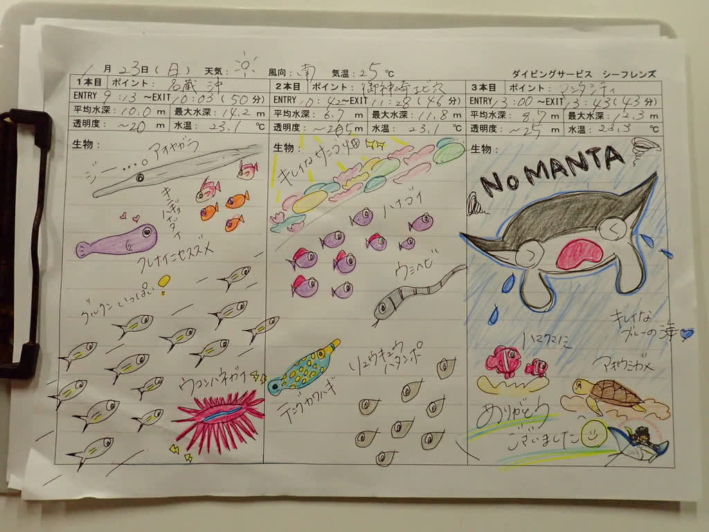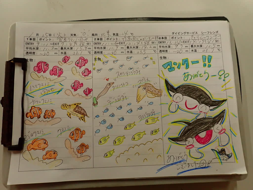 昨日はマンタを思う存分見ることができたので