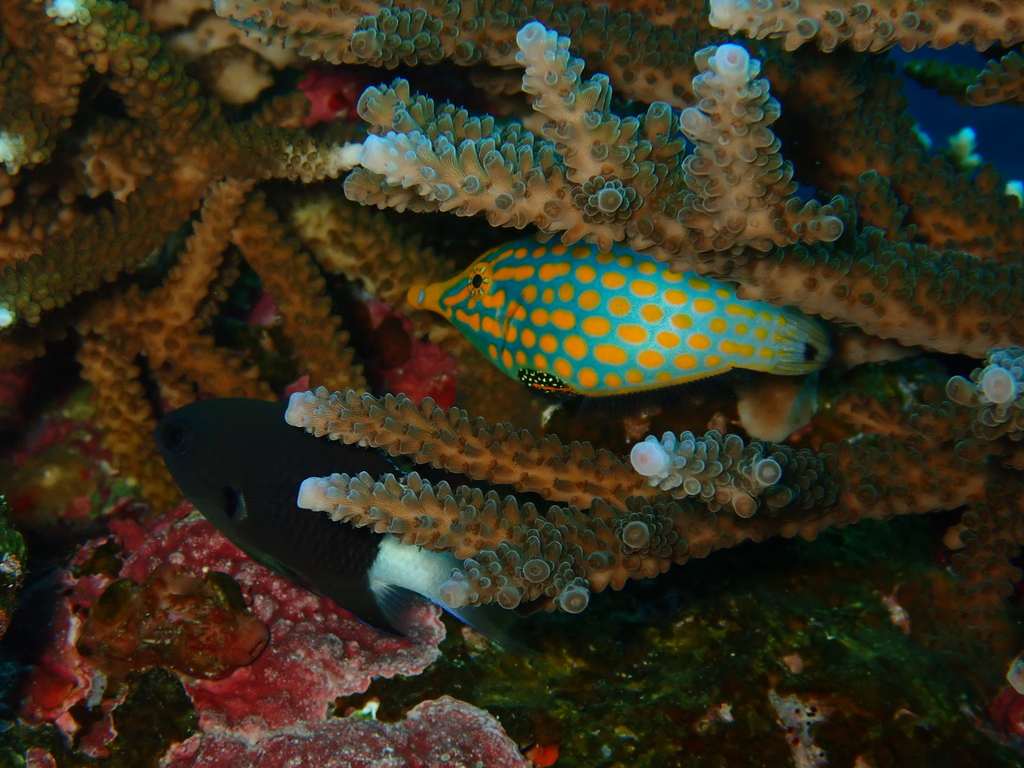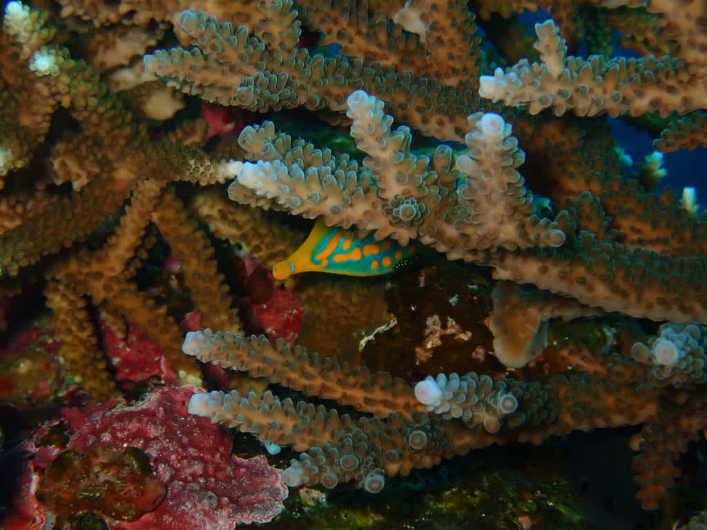 そんなサンゴですが、よーく見てみると色んな魚が潜んでいたり…