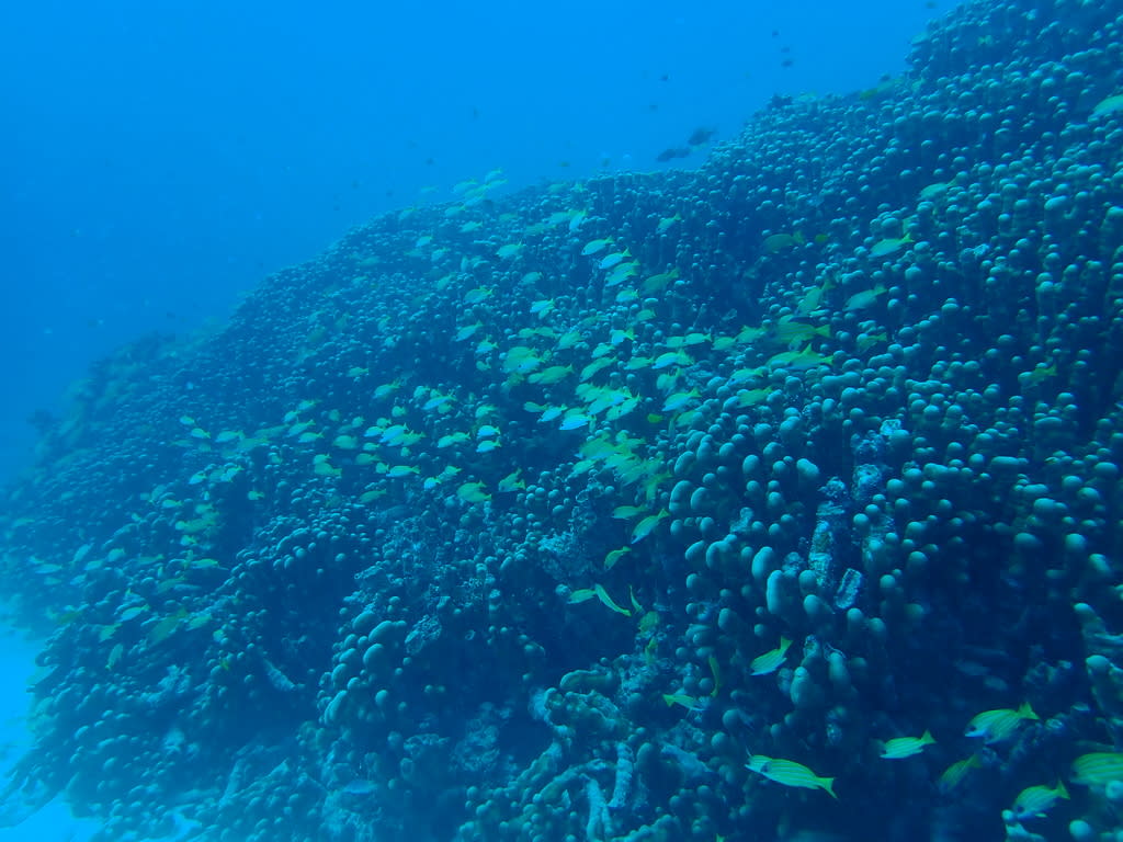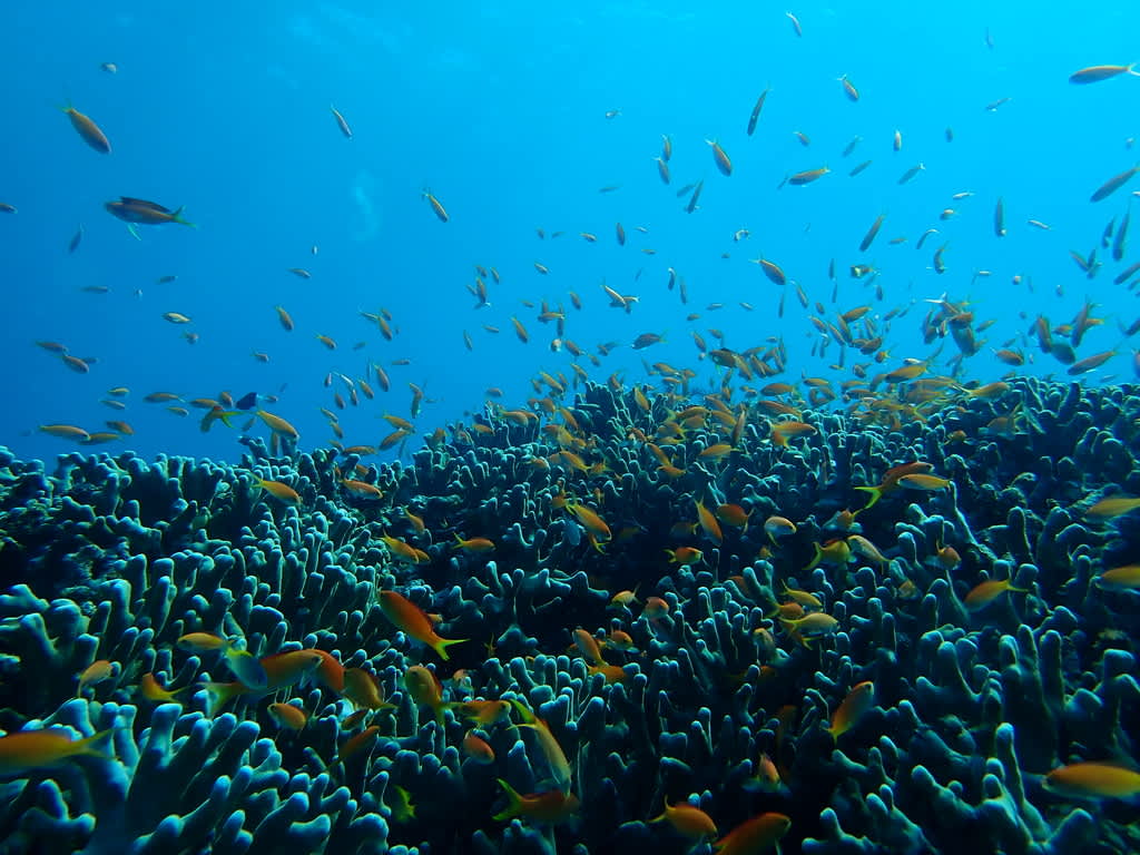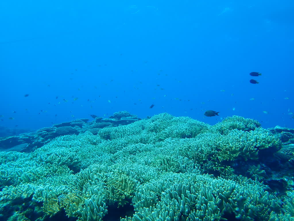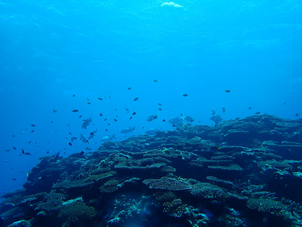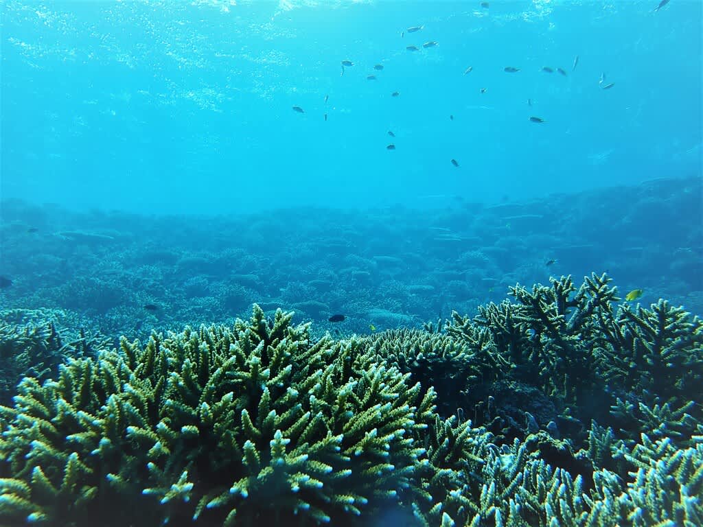 写真では伝えきれないですが、一面に広がるサンゴ礁が