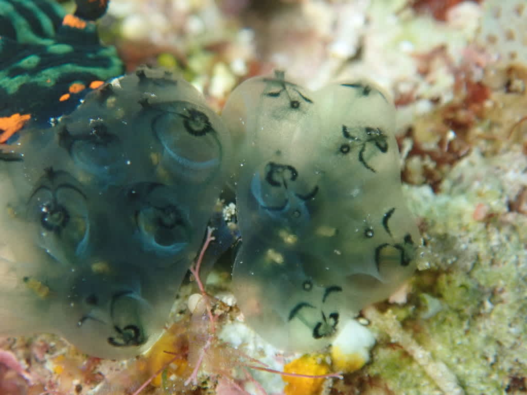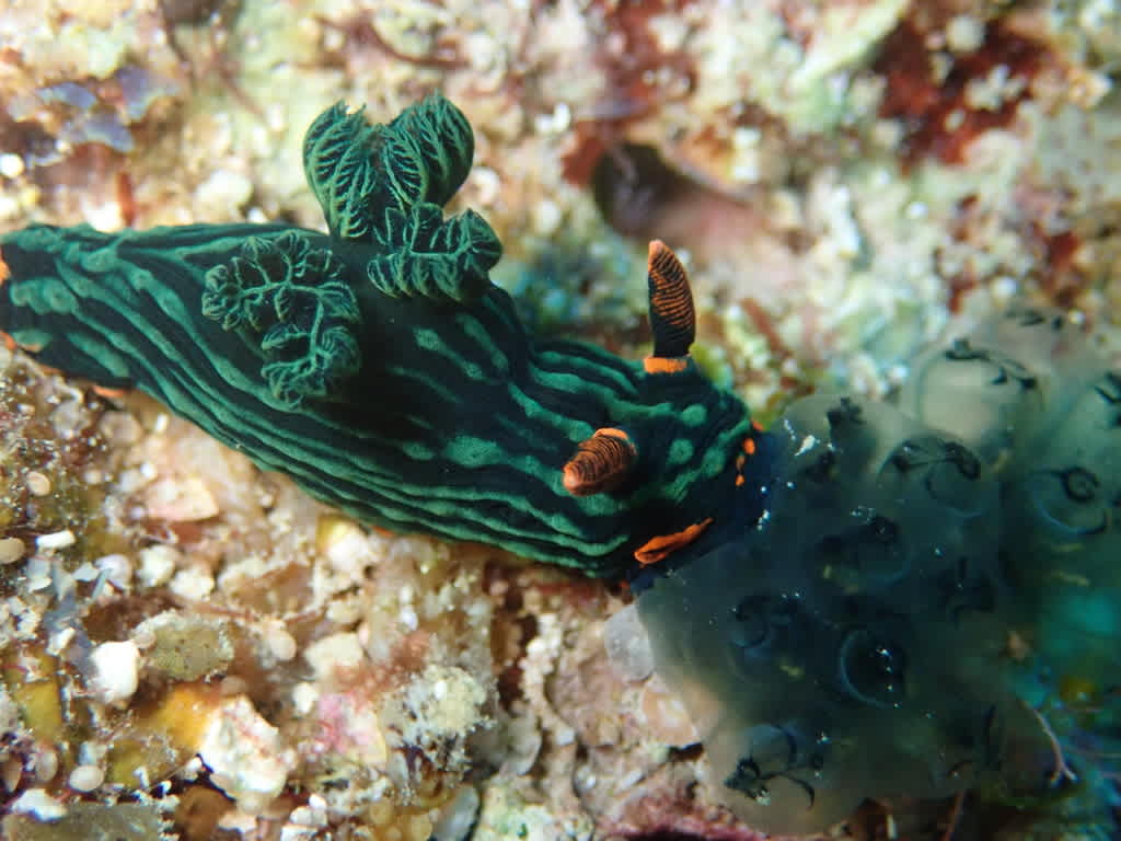 アカフチリュウグウウミウシがワライホヤを食べている!!
