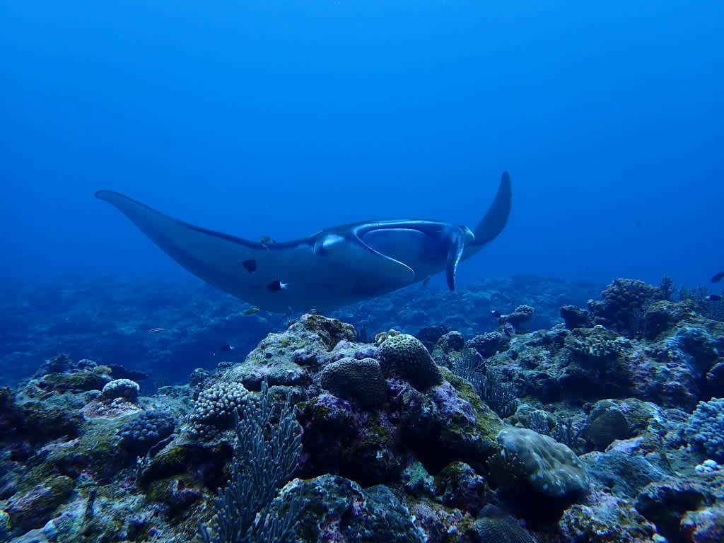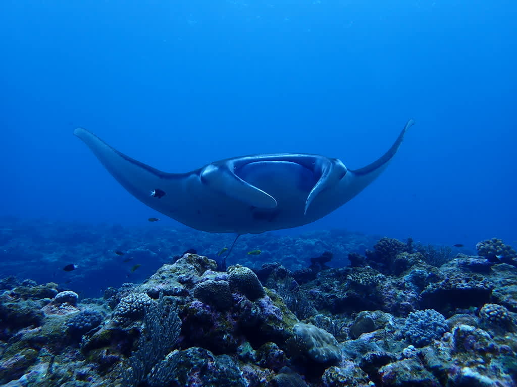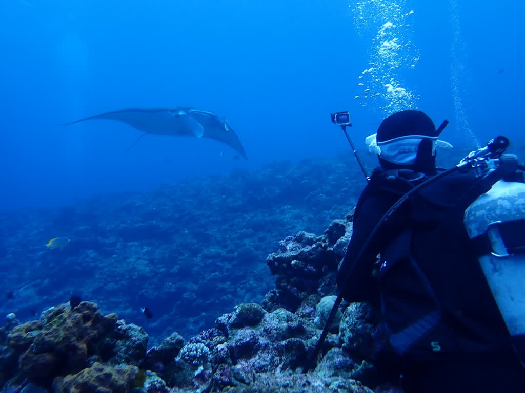 近くで待っているとマンタの方からこちらに寄って来てくれます♪