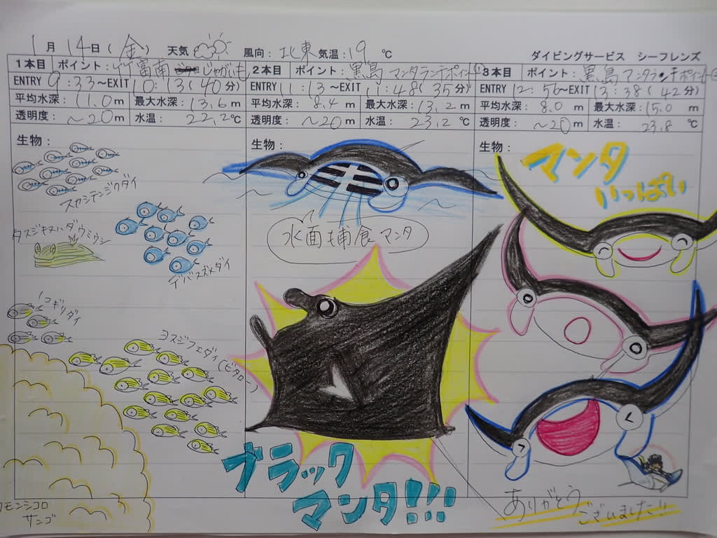 今日は3枚のマンタが見れましたよ~~~~(*^-^*)!