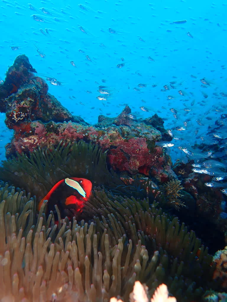 同じ根にスカシテンジクダイと、ハマクマノミのコラボ♪