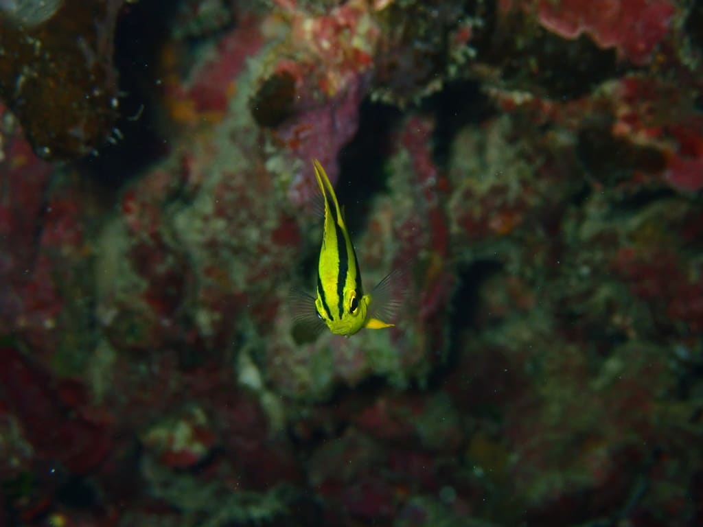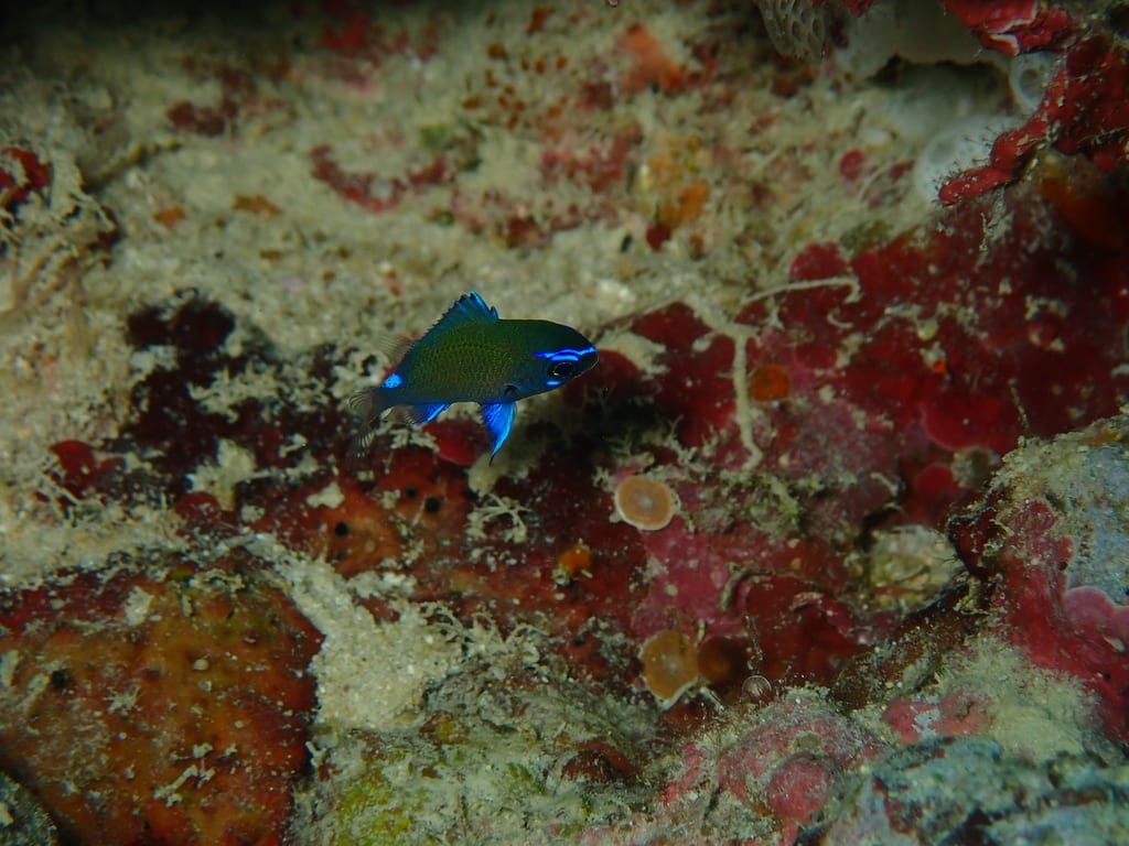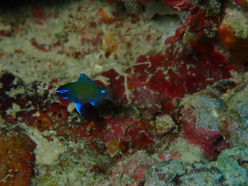 アマミスズメダイの幼魚ちん。正面から撮りたいのに、撃沈。