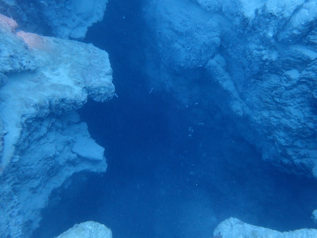 温泉の側にできた暗くてどこまで落ちているのか