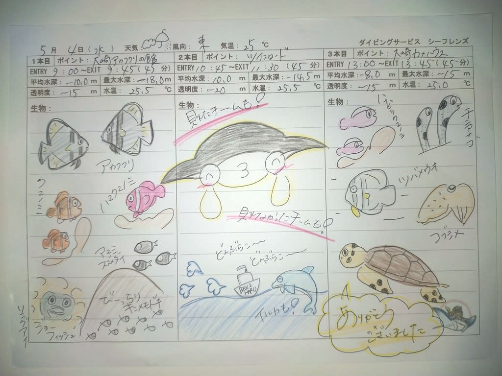 今日がダイビング最終日の方も多いですね。