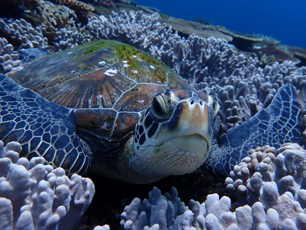 寝ているアオウミガメ(∩´∀`)∩気持ちよさそう