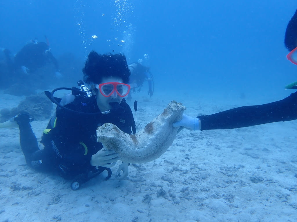 なまこに触るのは初めてかな?(*^▽^*)