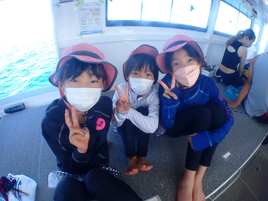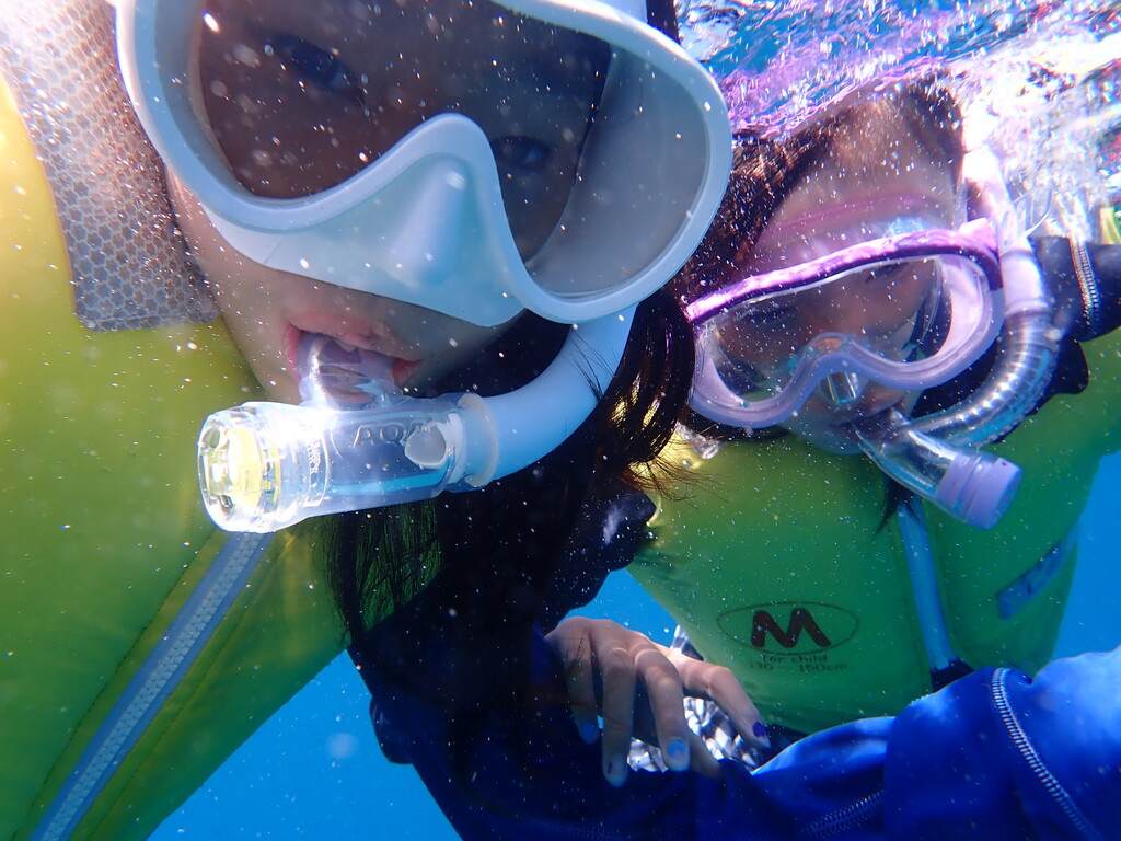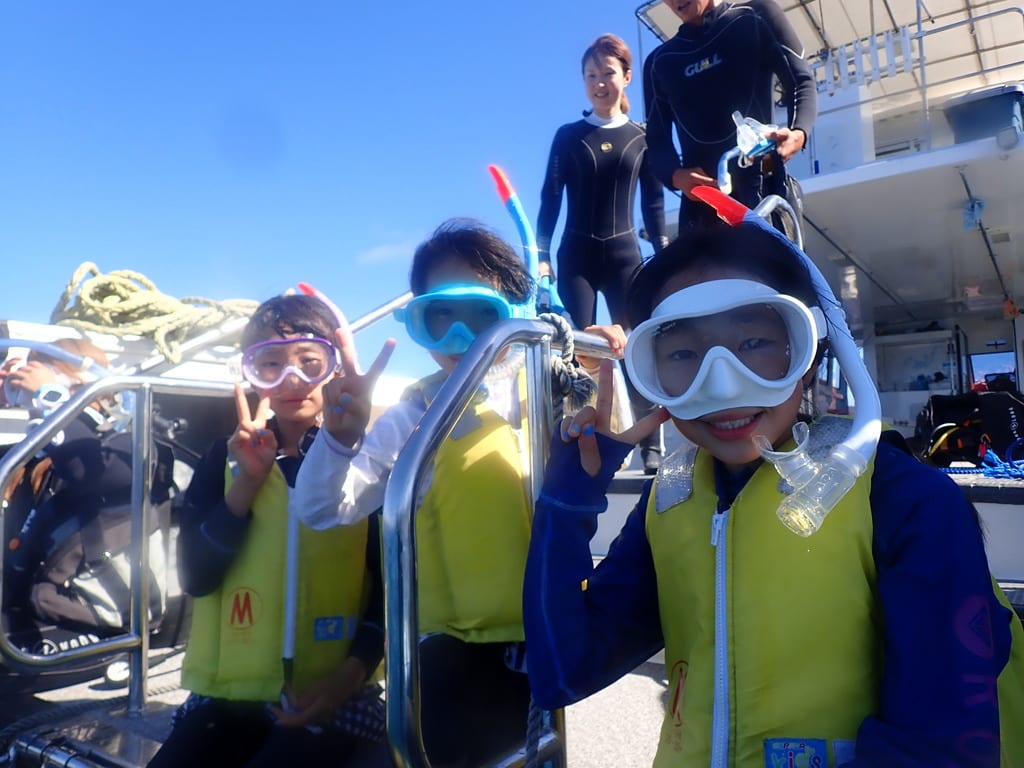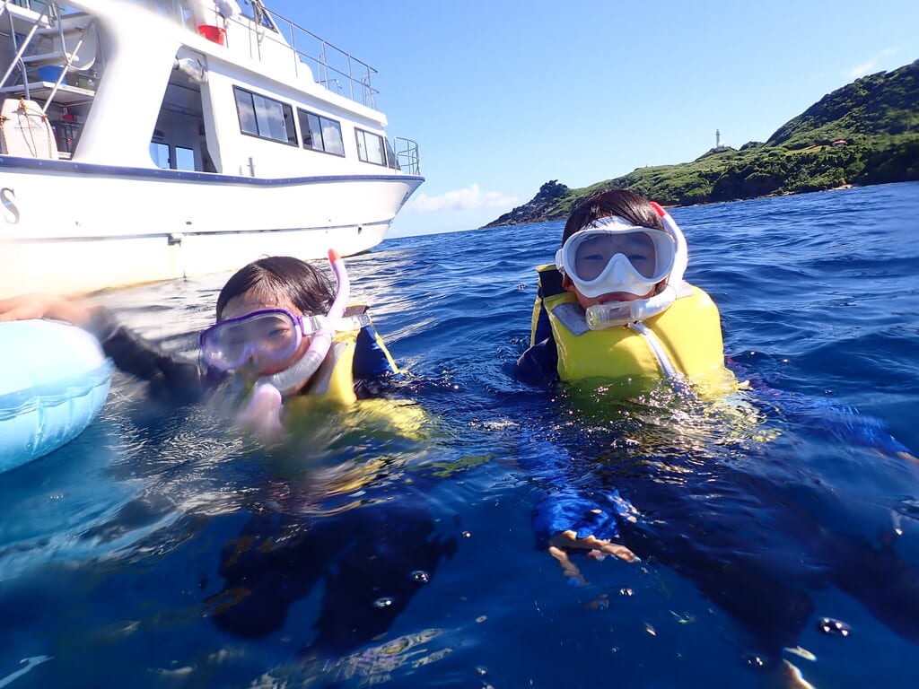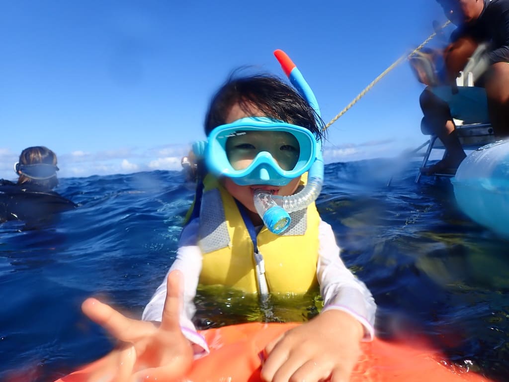シュノーケルを楽しむ子供たちと