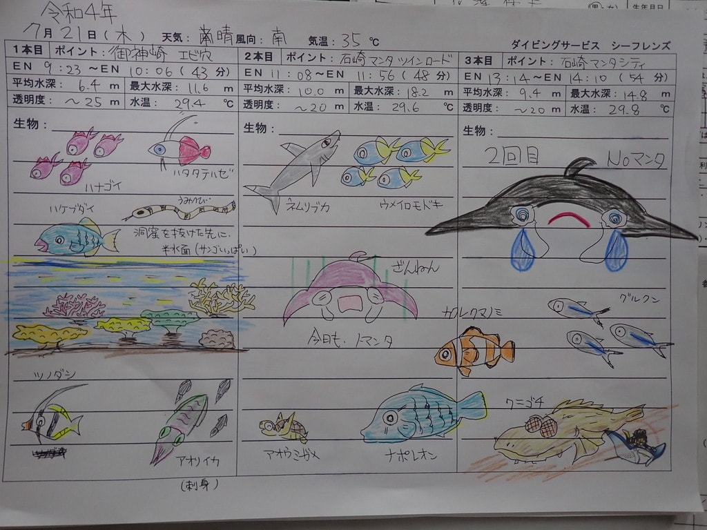 マンタに会えたショップもいるみたいです!
