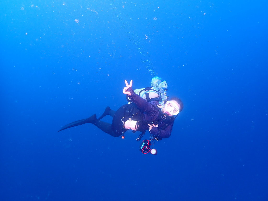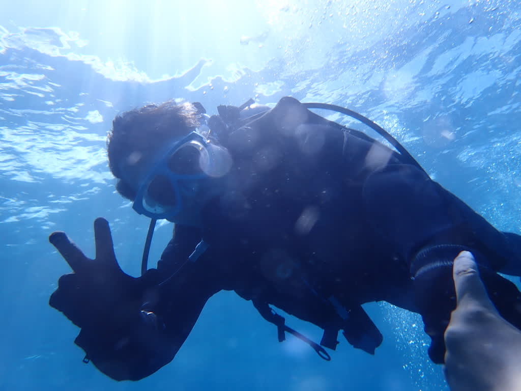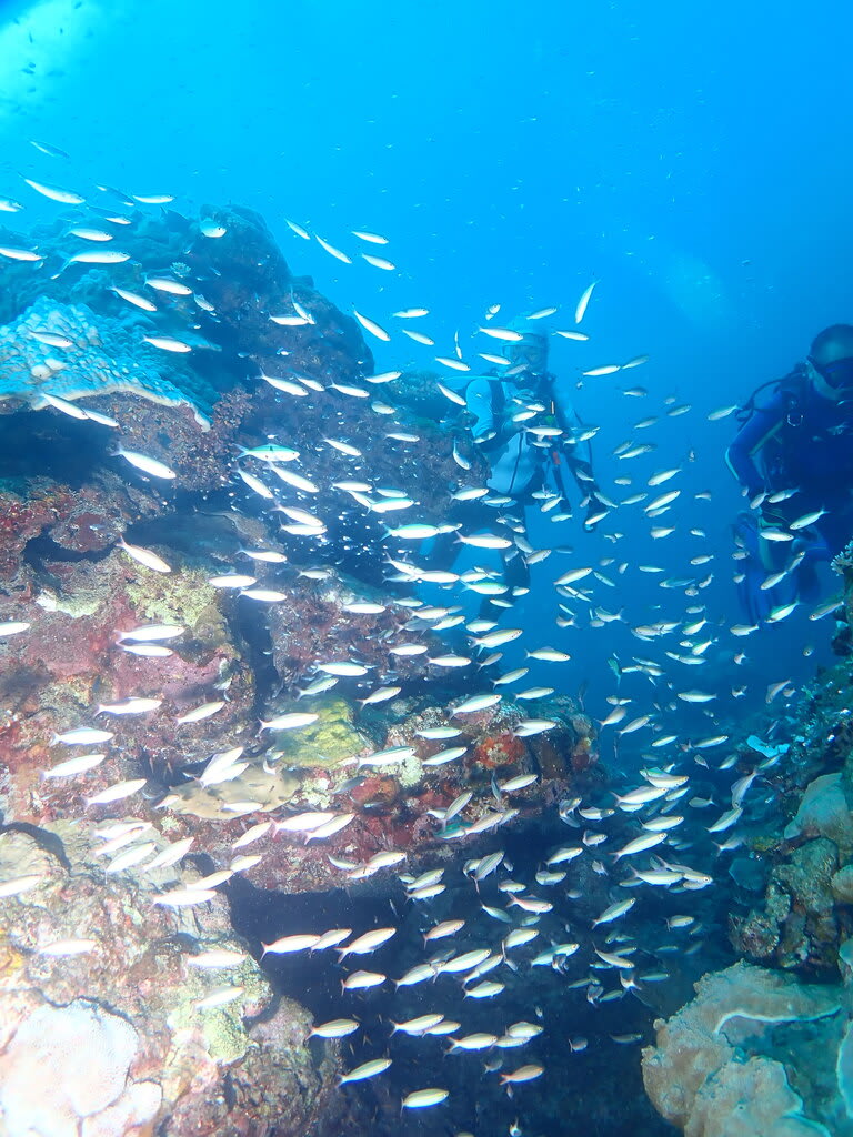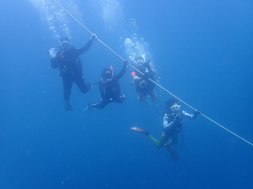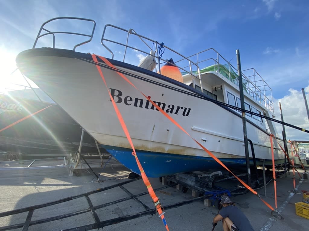 3本目のダイビングが終わると土砂降り。港へ戻って土砂降り。