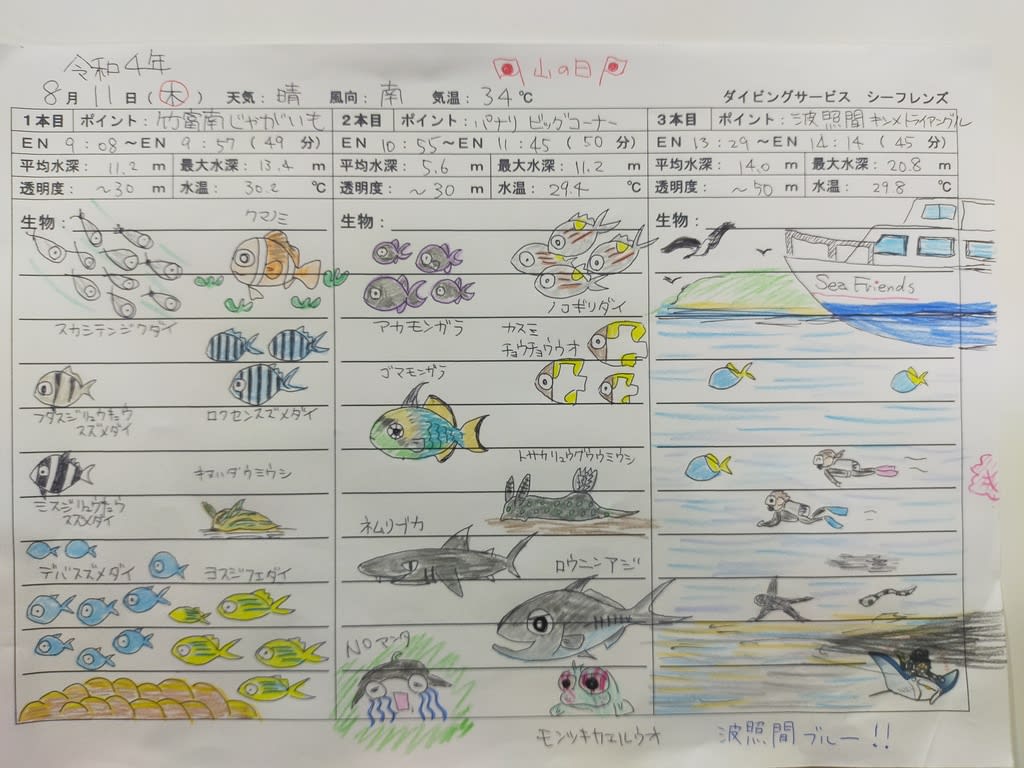< 石垣島シーフレンズの海情報/日記 >