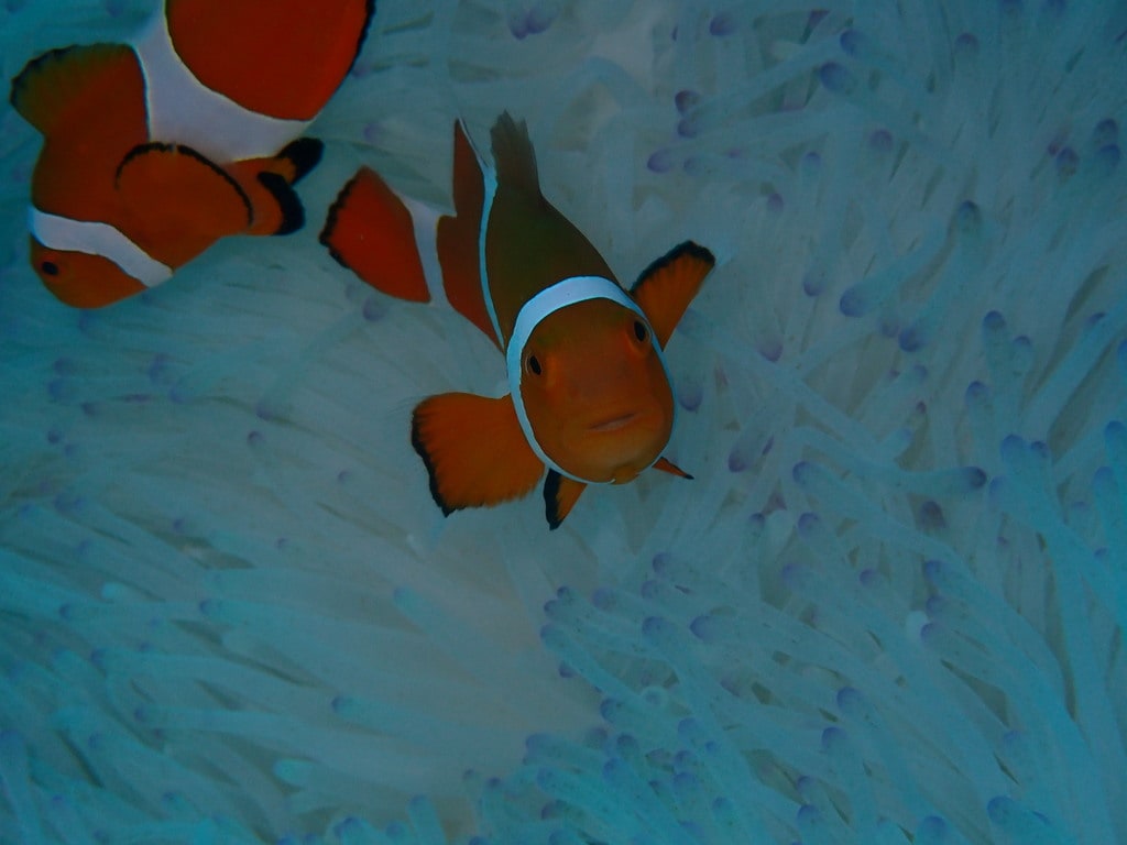 クマノミ達は正面を狙いました。かわいい