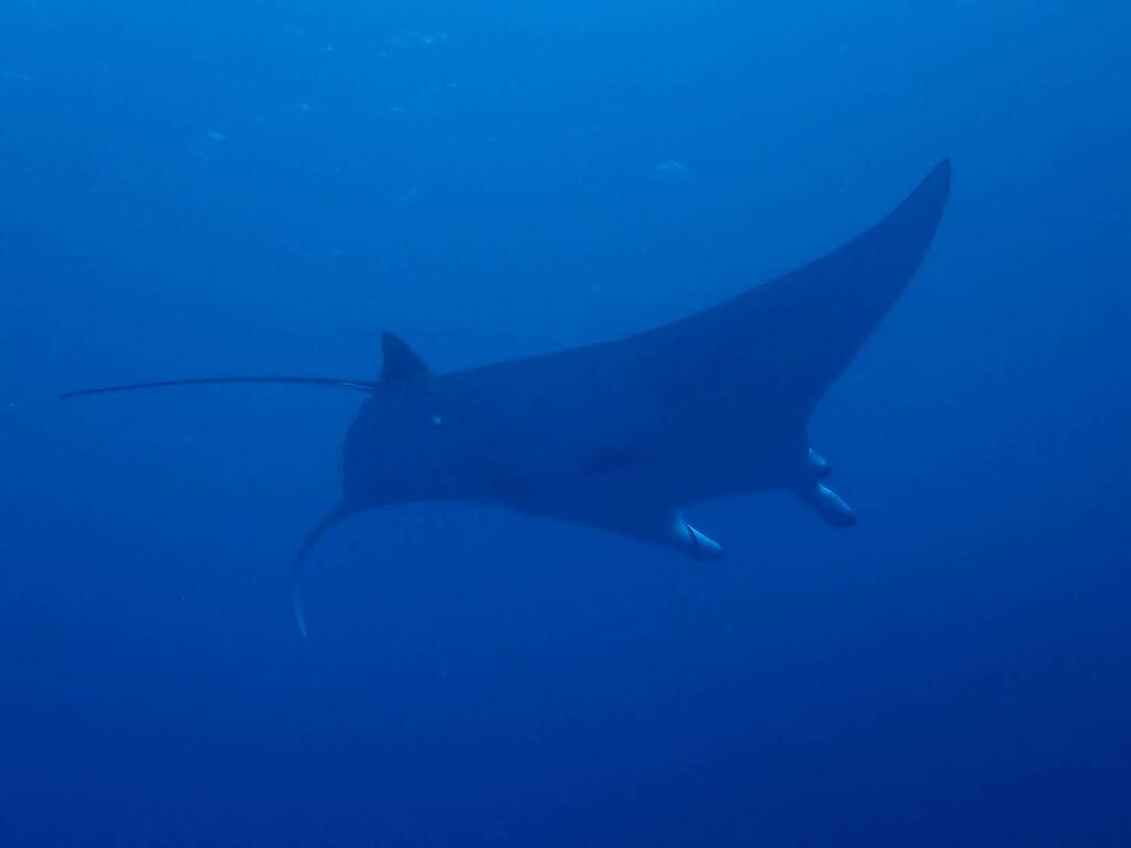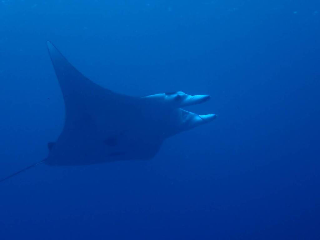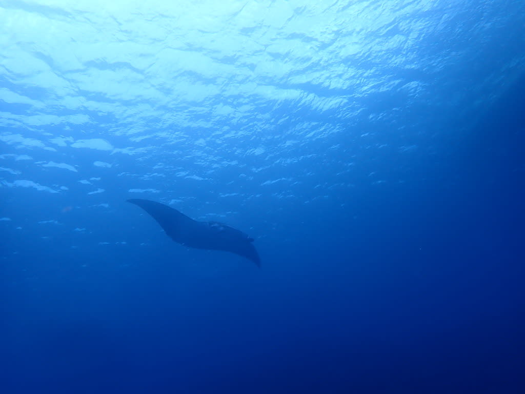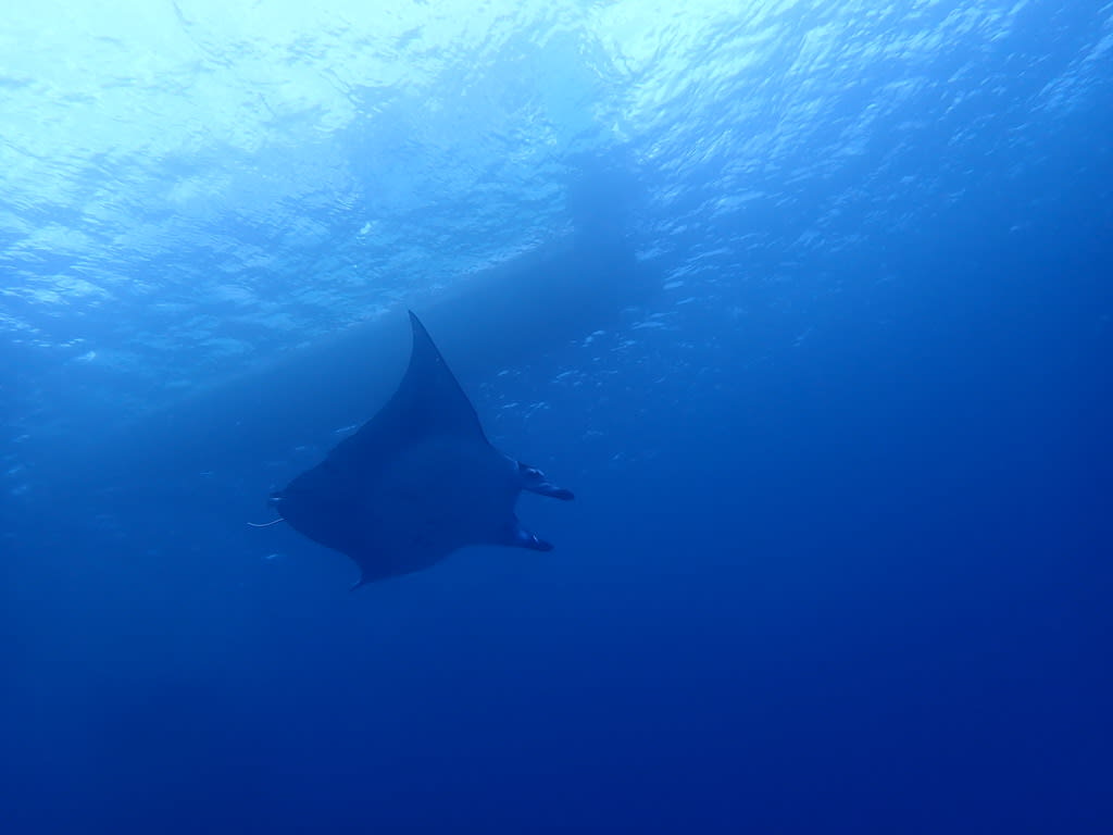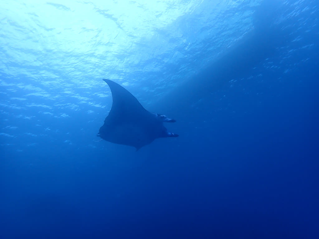 なんて思ってエキジットすると、船の前で水面マンタ!!
