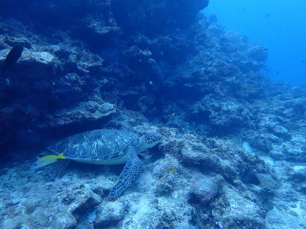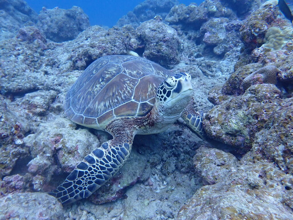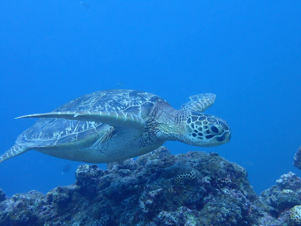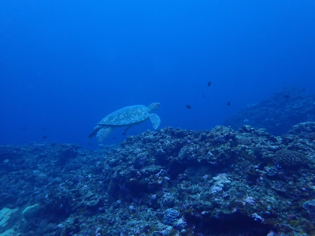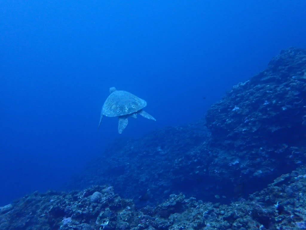 沖合いに目を向けると、ダイバー慣れしたカメがスイスイ~