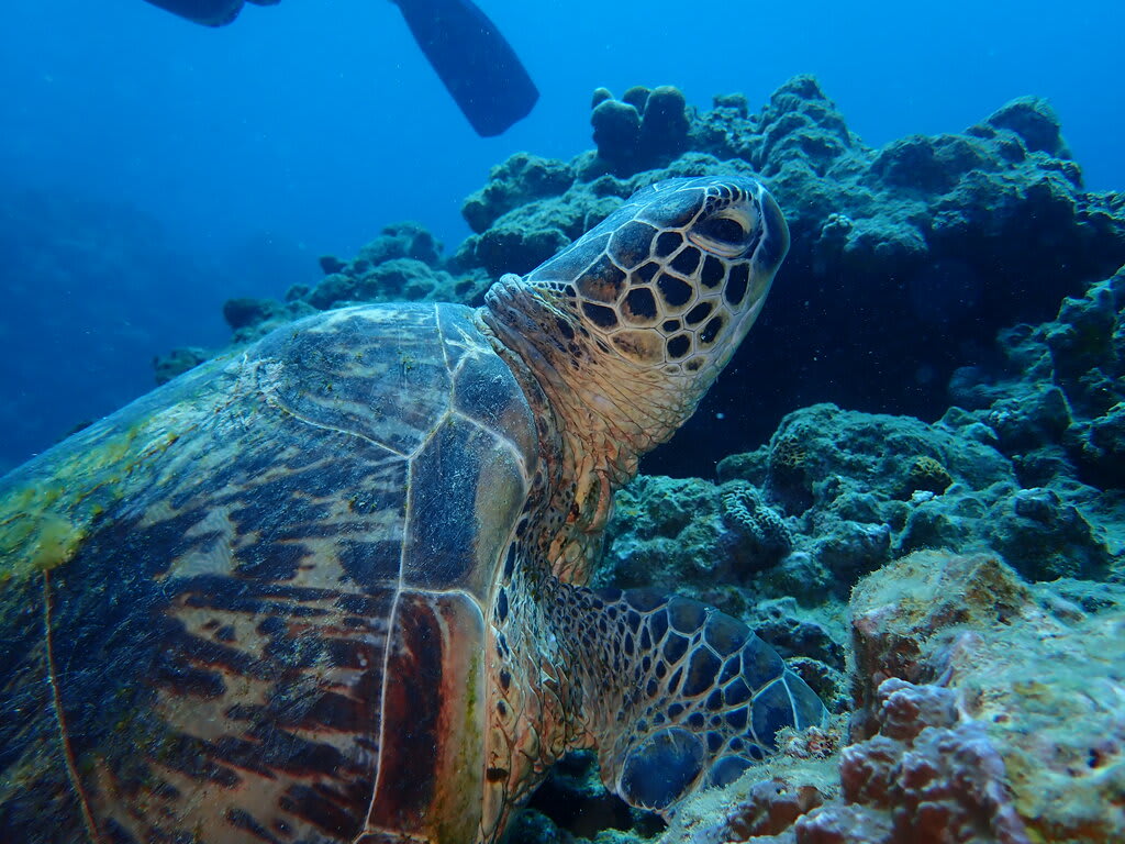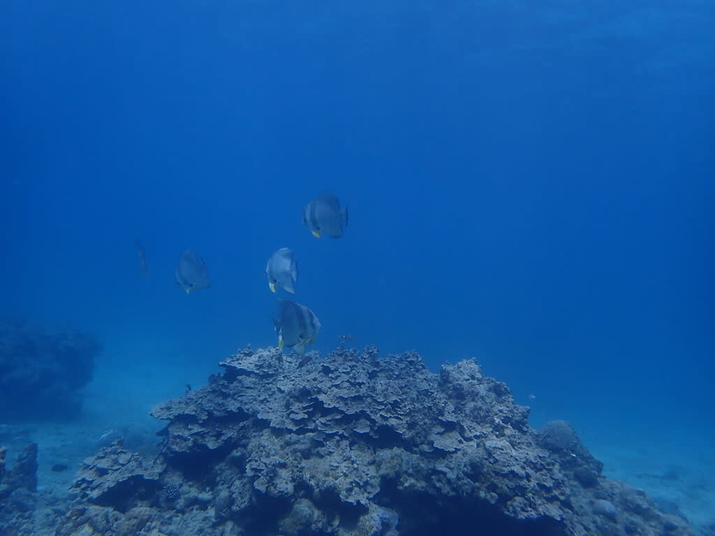 カメちゃんとも遊び、ツバメウオを遠くから観察