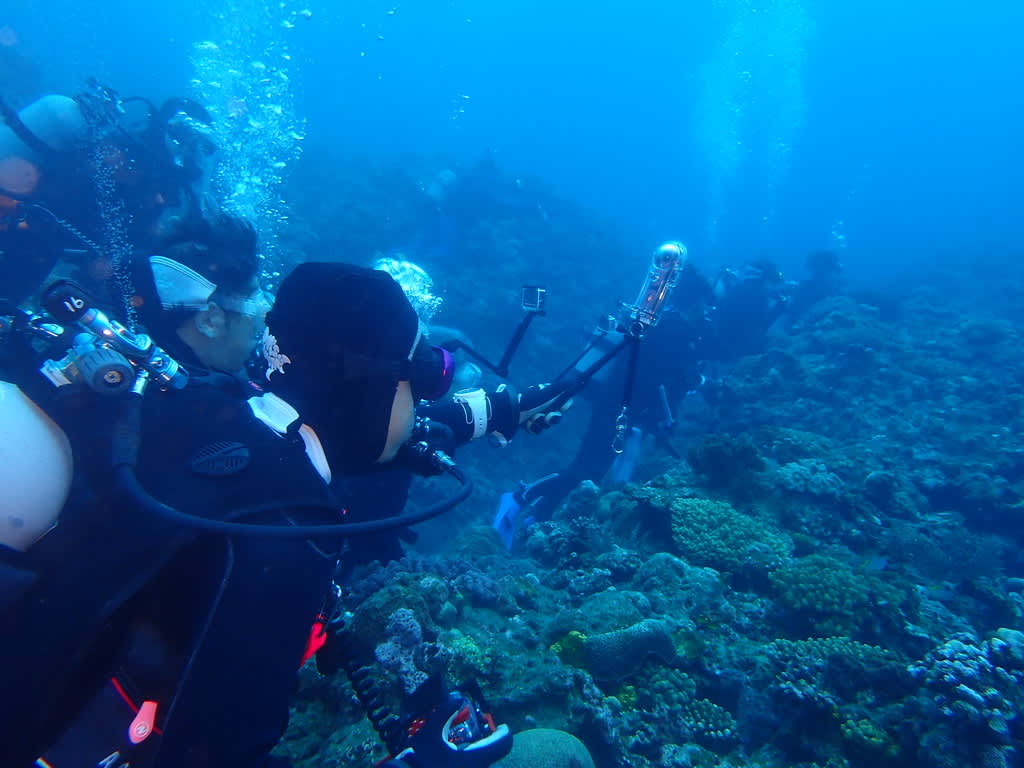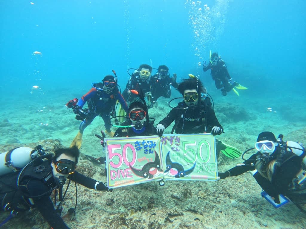 近くにいたダイバー達と集まってお祝いーヾ(≧▽≦)ノ