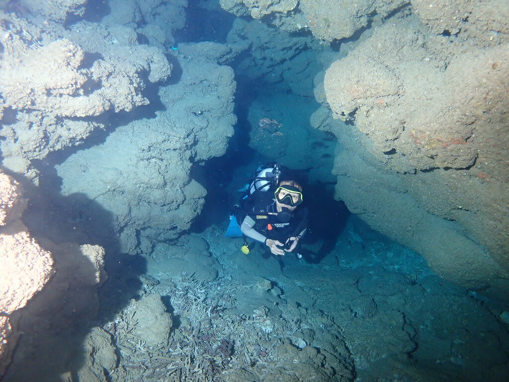 2本目は、【御神崎・エビ穴】で地形のダイビング。