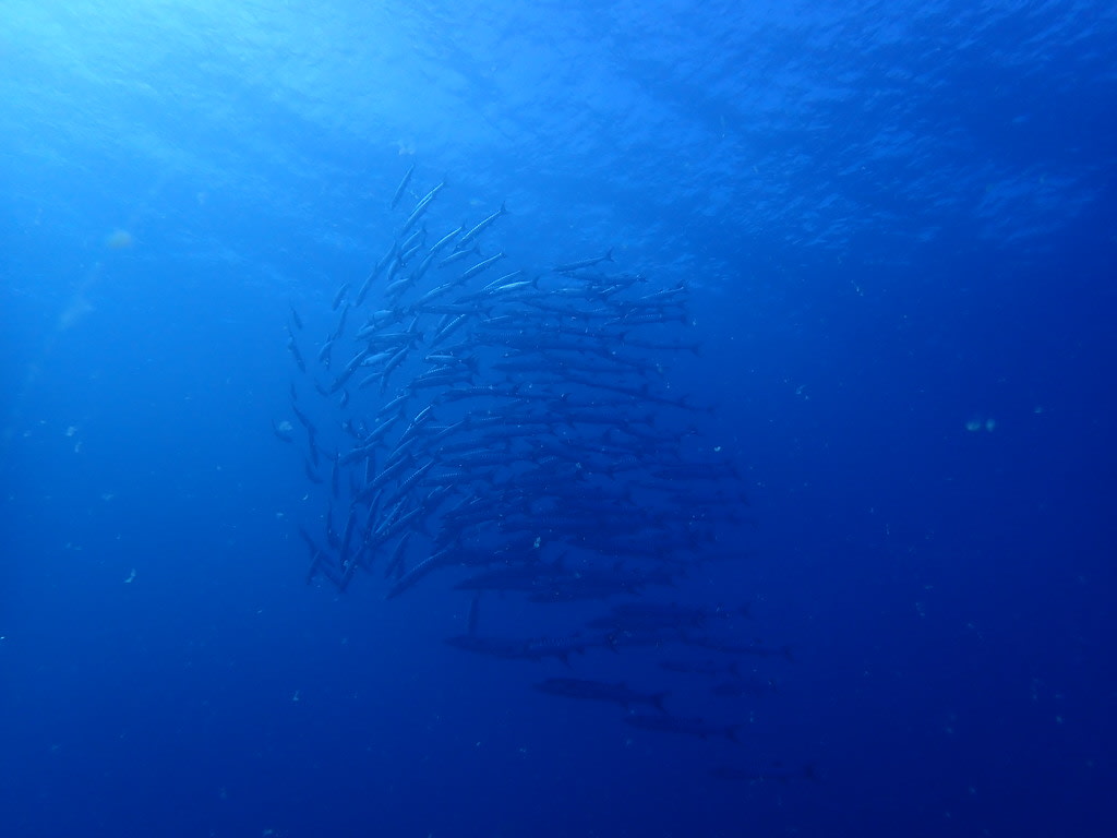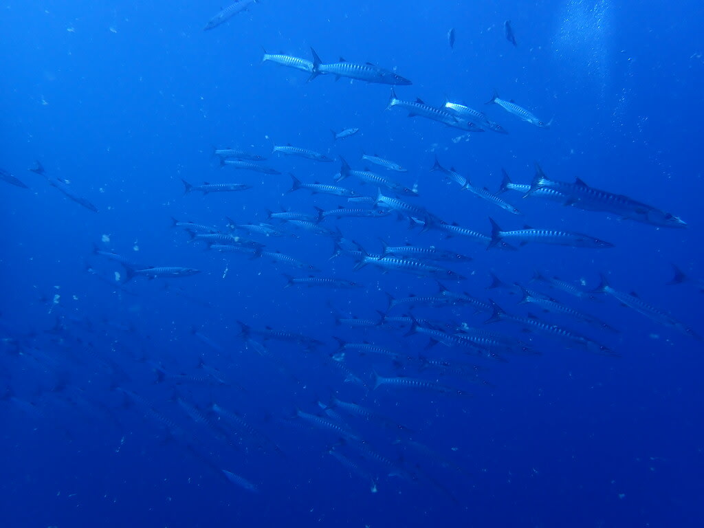 先頭を泳ぐバラクーダはボスでしょうか?一番太くて怖い顔をしていました😱