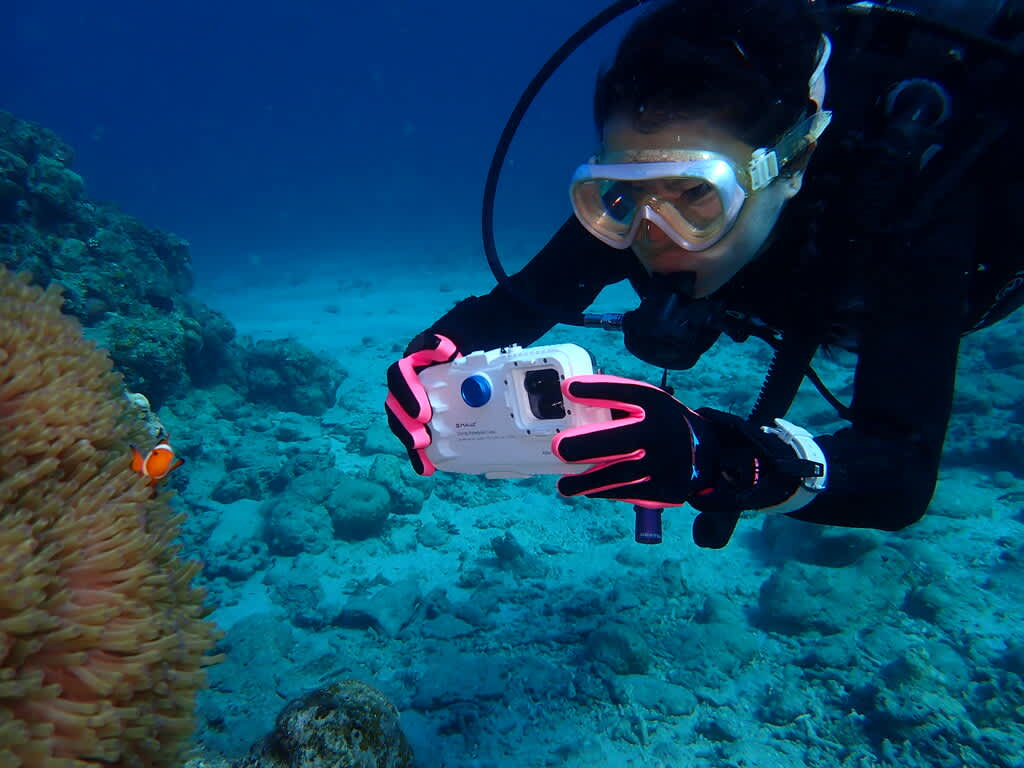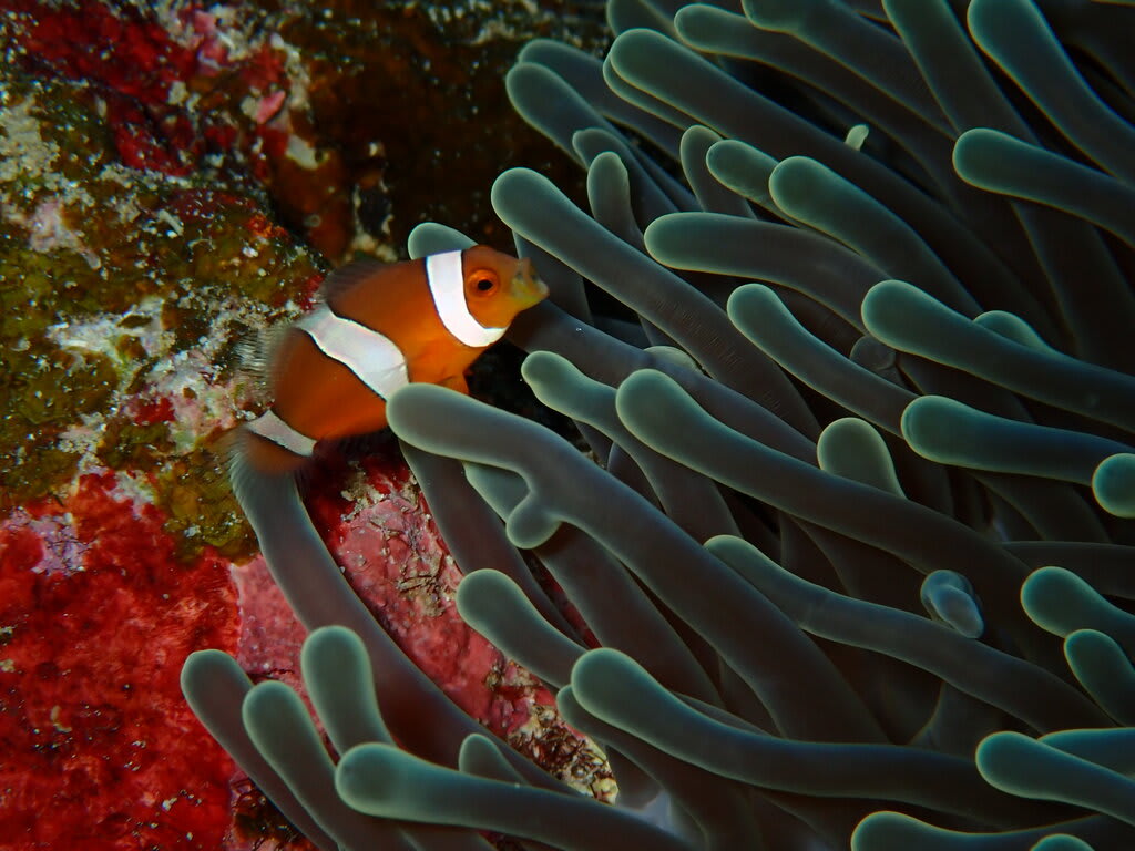クリーニング中のアカククリをじーっと観察