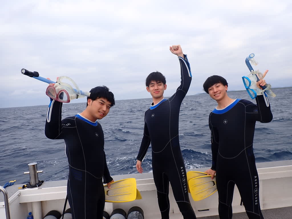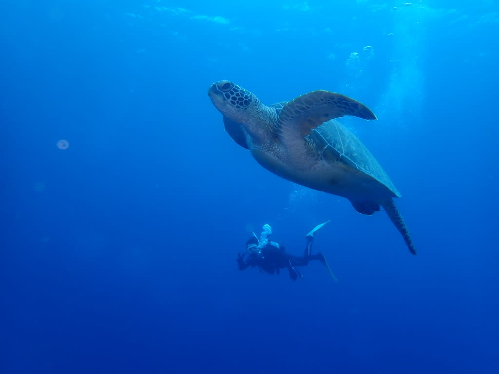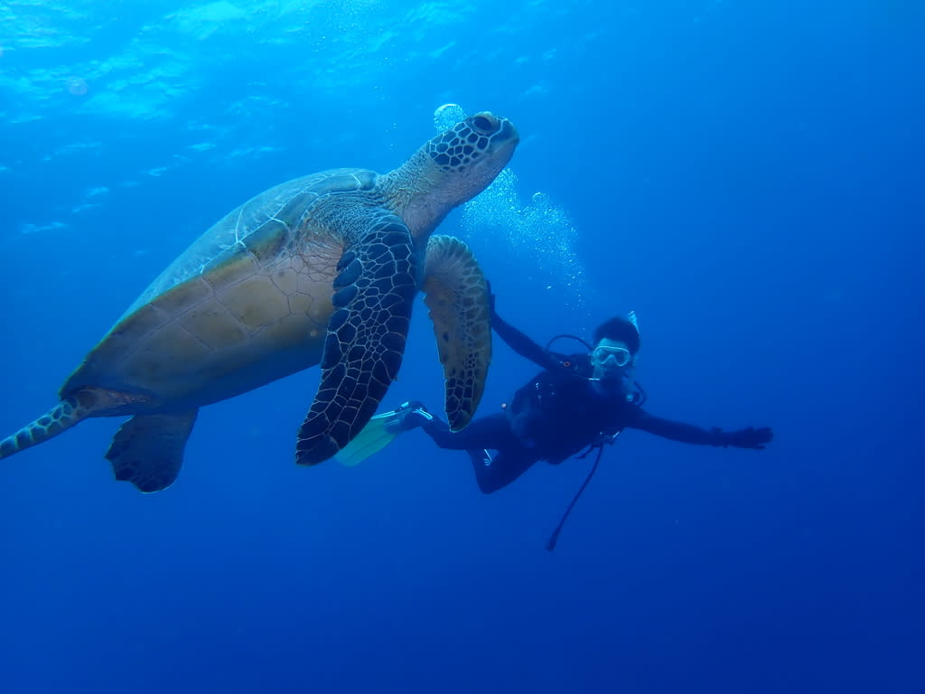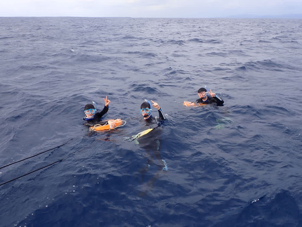 お昼休憩中に、船の上から水面マンタも見ることができて、