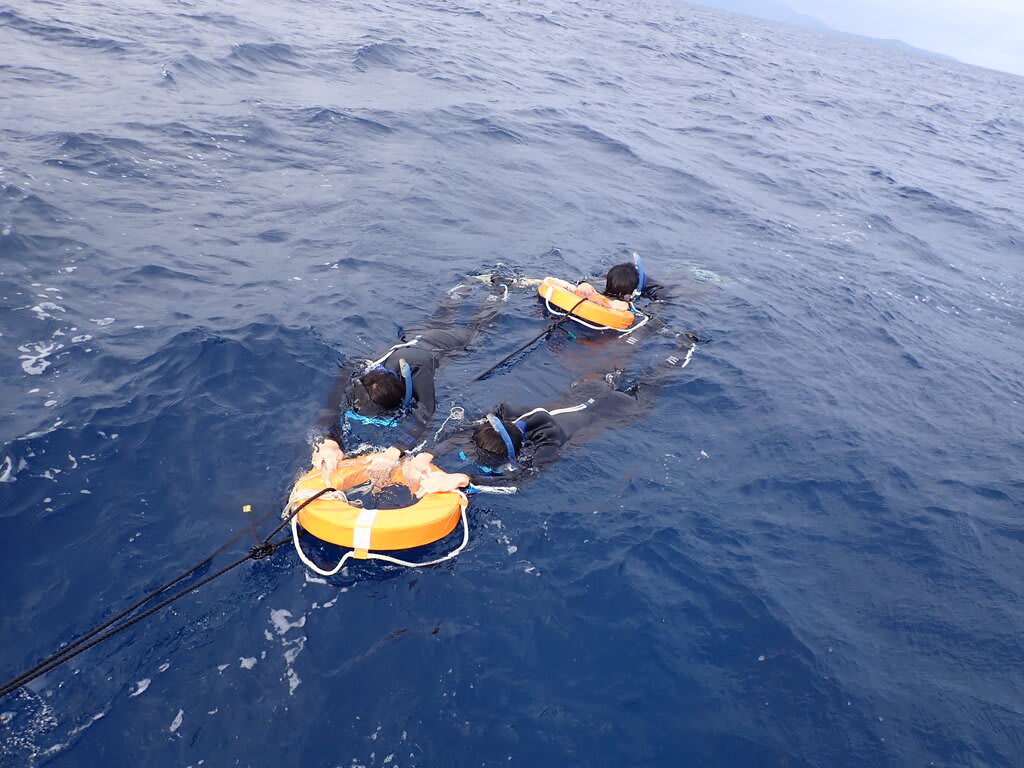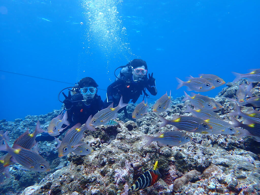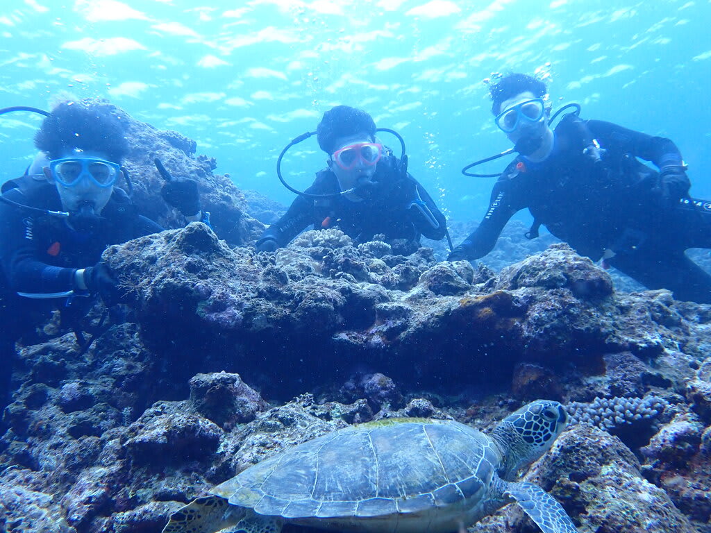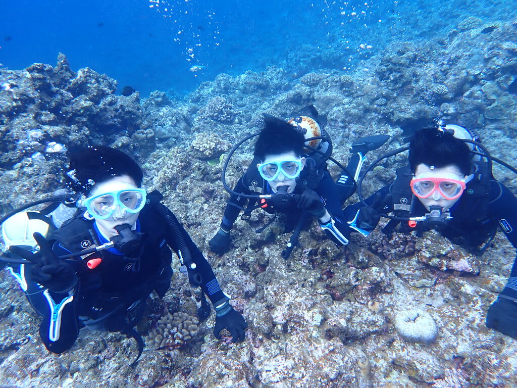 お昼休憩中に、船の上から水面マンタも見ることができて、