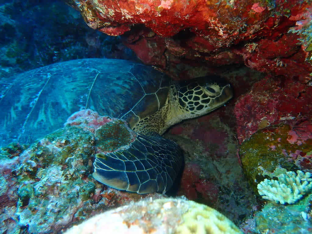 沖を泳ぐカメは、ゆ~っくり近づけば逃げることなく