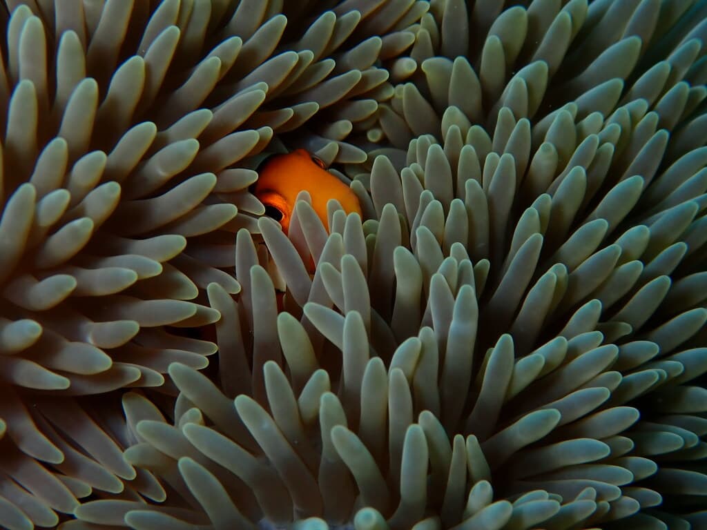 本当に埋もれて、カクレちゃってるカクレクマノミ