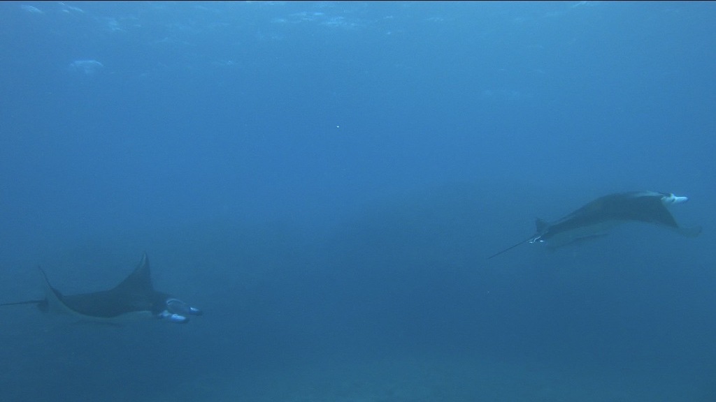 すこし距離をとれば、たくさんのマンタが近くにいる事が分かります。