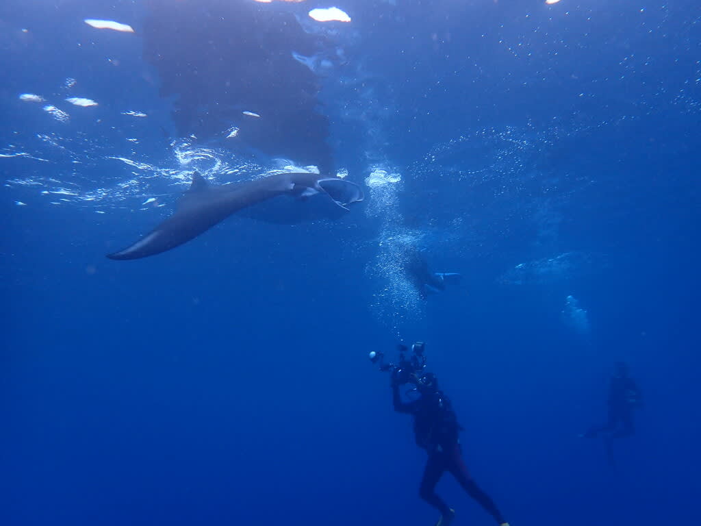 その後も、みんなの目の前を大きく旋回してくれたマンタがッ