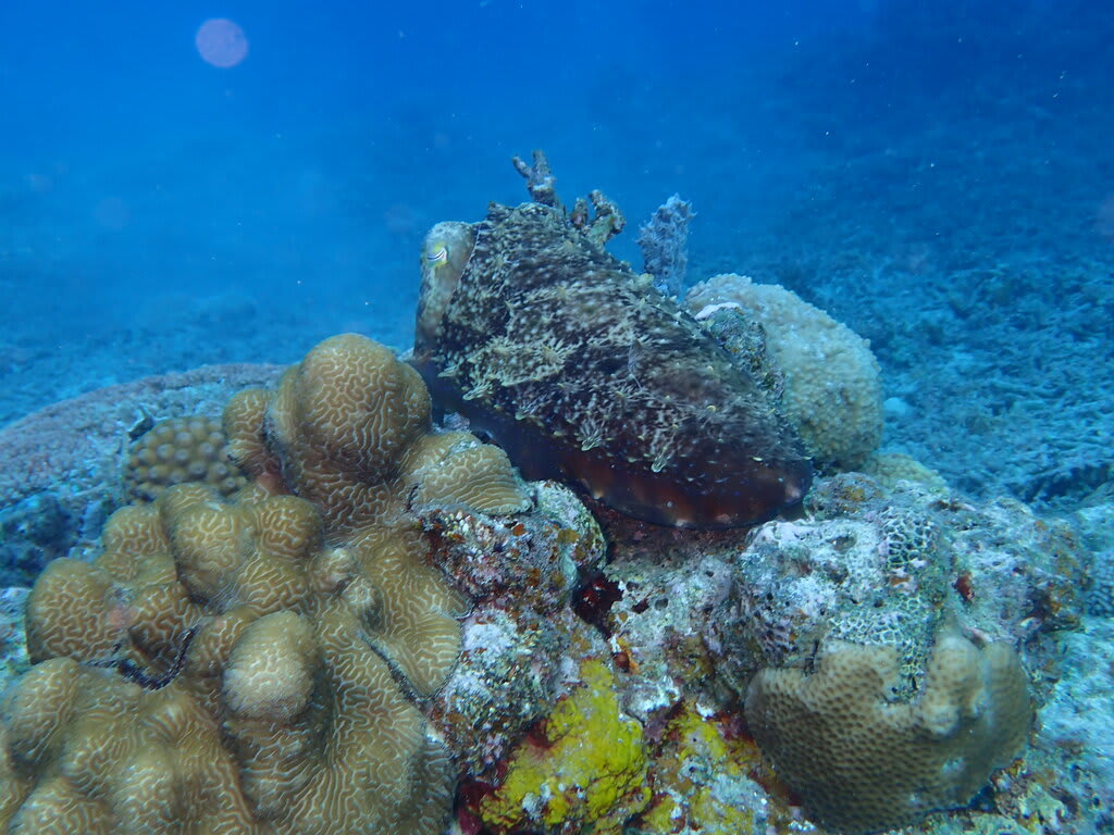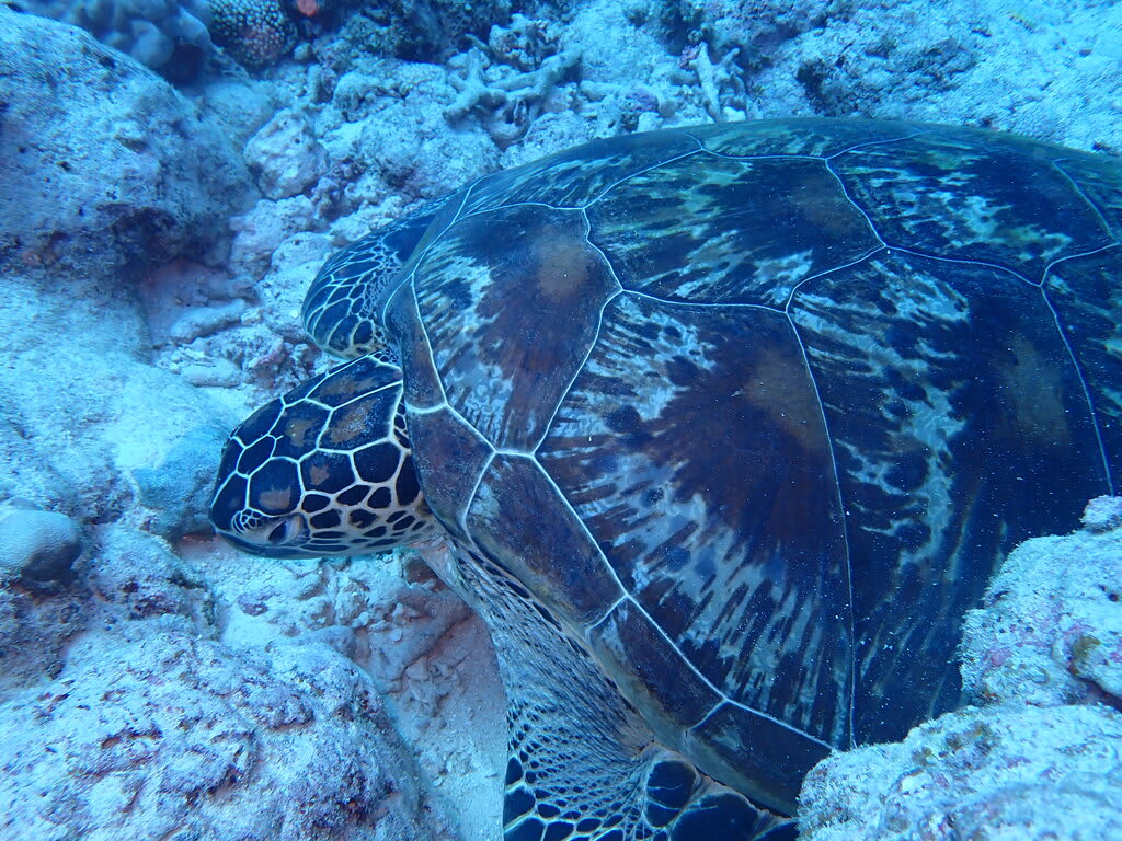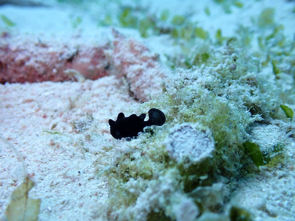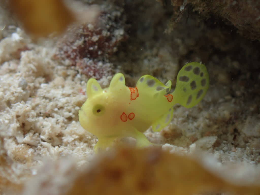 カメの甲羅でお食事中のイシガキカエルウオに癒されたり(o^―^o)