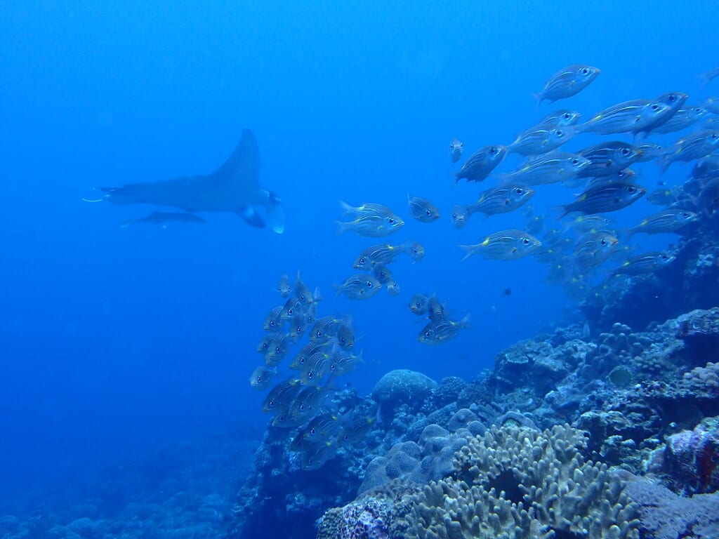 黒島では水面マンタではなく、水中マンタが見れちゃったりして、