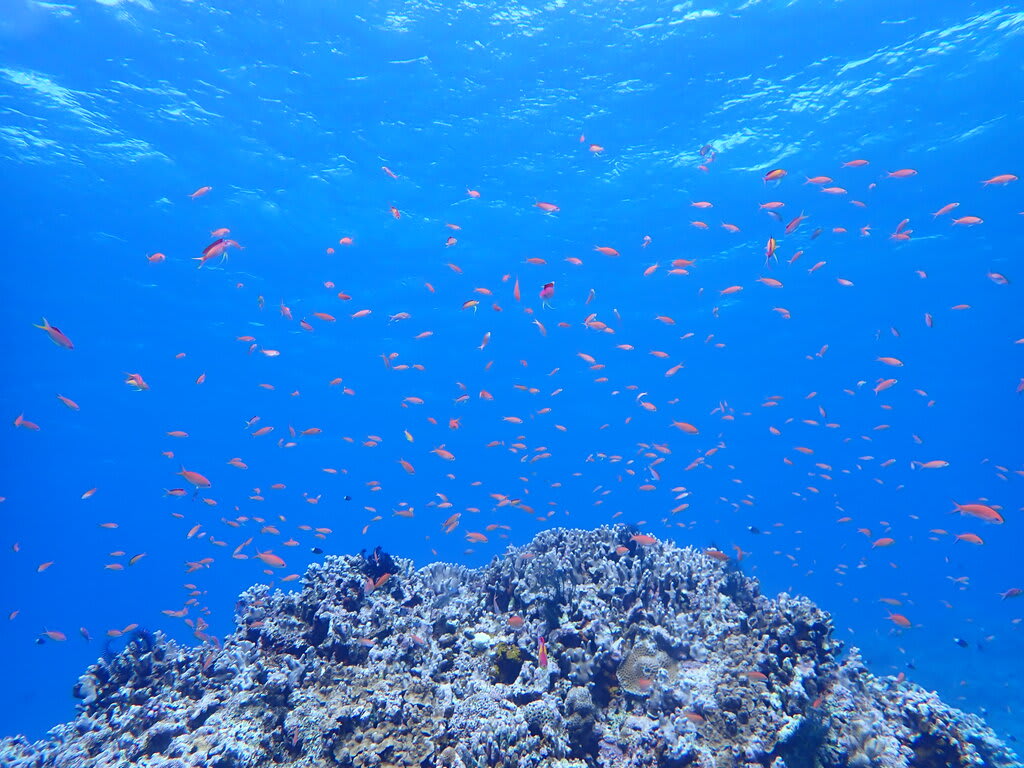 カラフルなサンゴやスズメダイに癒されて(^▽^)