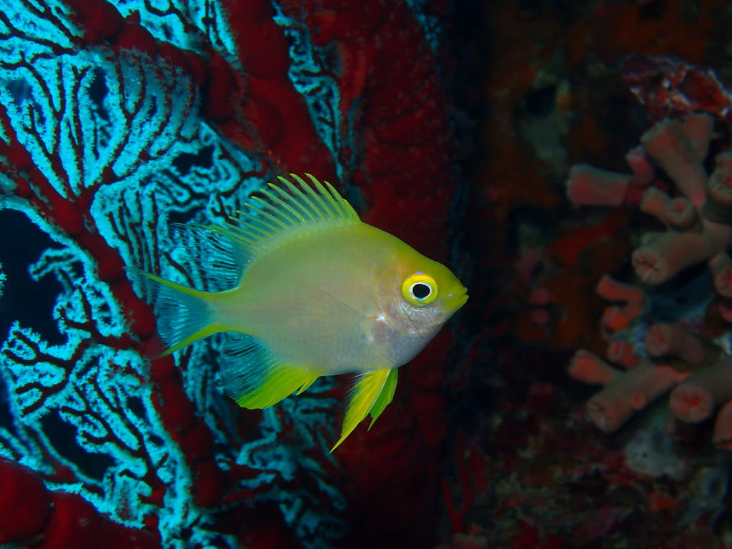 ネッタイスズメダイの鮮やかな黄色が素敵☆