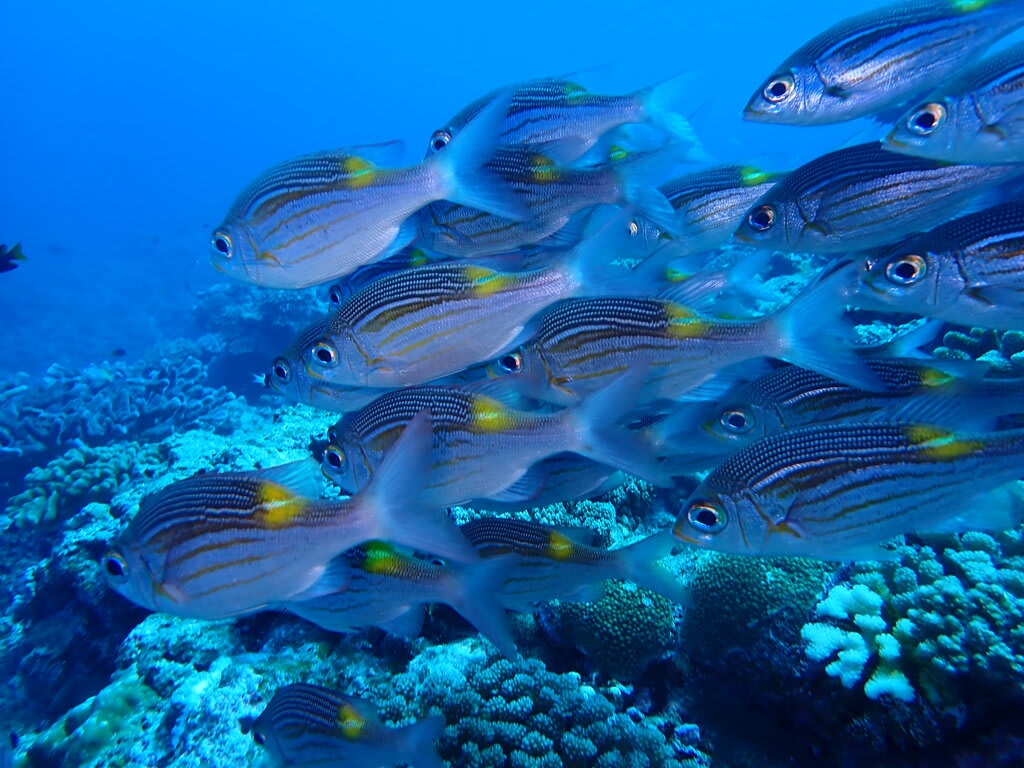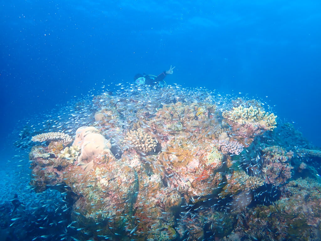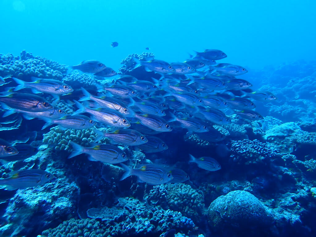 海の中も澄んでて、透明度もいいので、魚がたくさん見えます。