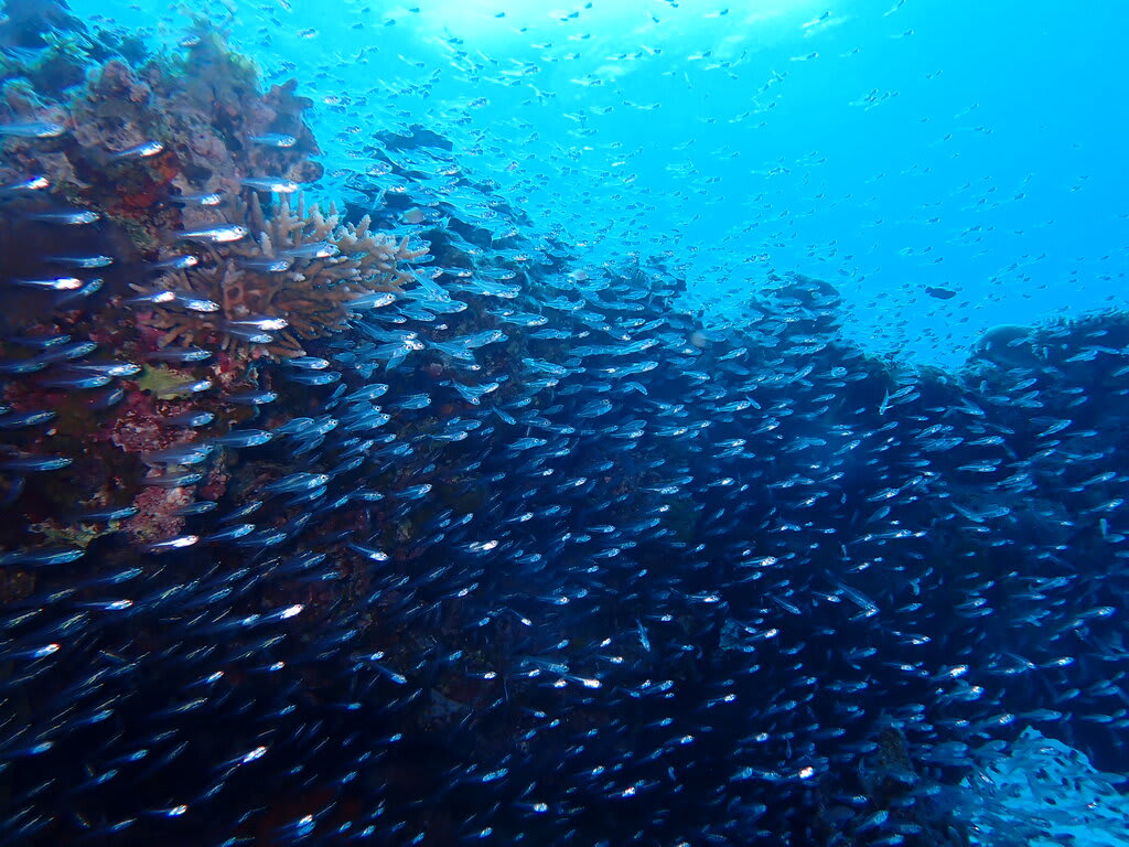 竹富では、デバスズメダイやスカシテンジクダイがいっぱい。
