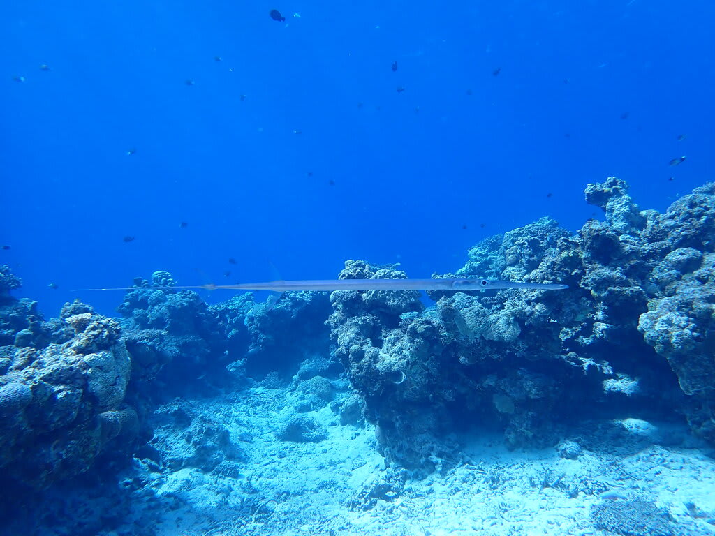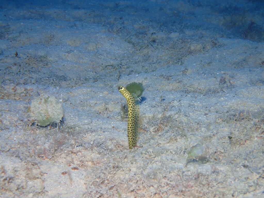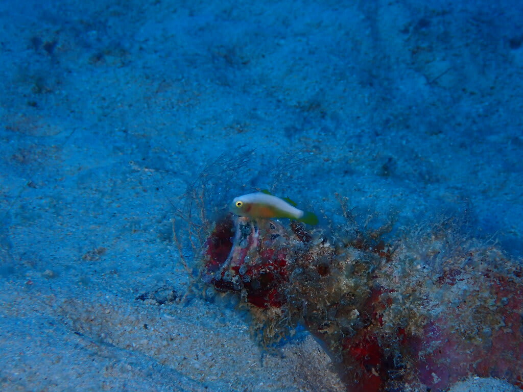 素通りマンタ、クサハゼ、ミドリリュウグウウミウシ、ハナヒゲウツボ幼魚、ハダカハオコゼ(ピンク・白)、シライトウミウシ、アカククリ、ノコギリダイ、ヒトスジギンポ、アオウミガメ、etc…
