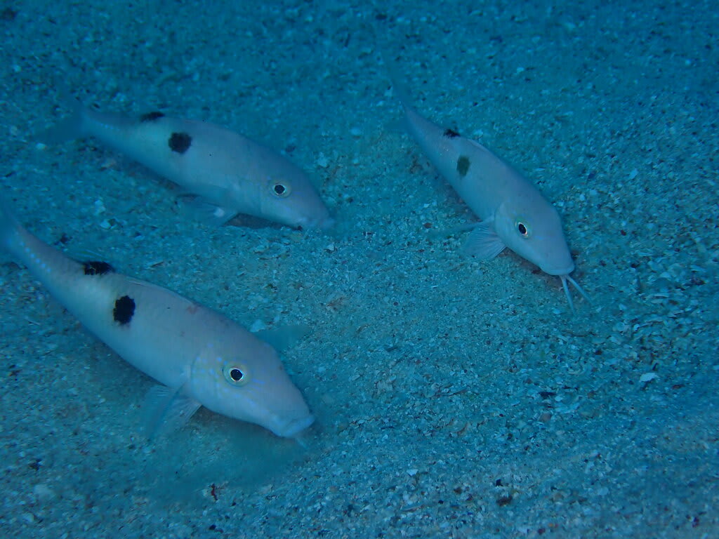 リュウキュウヒメジが餌をパクパク。