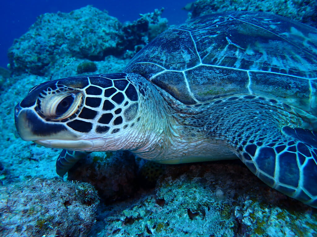 アオウミガメにこんなに近づけるなんて!!